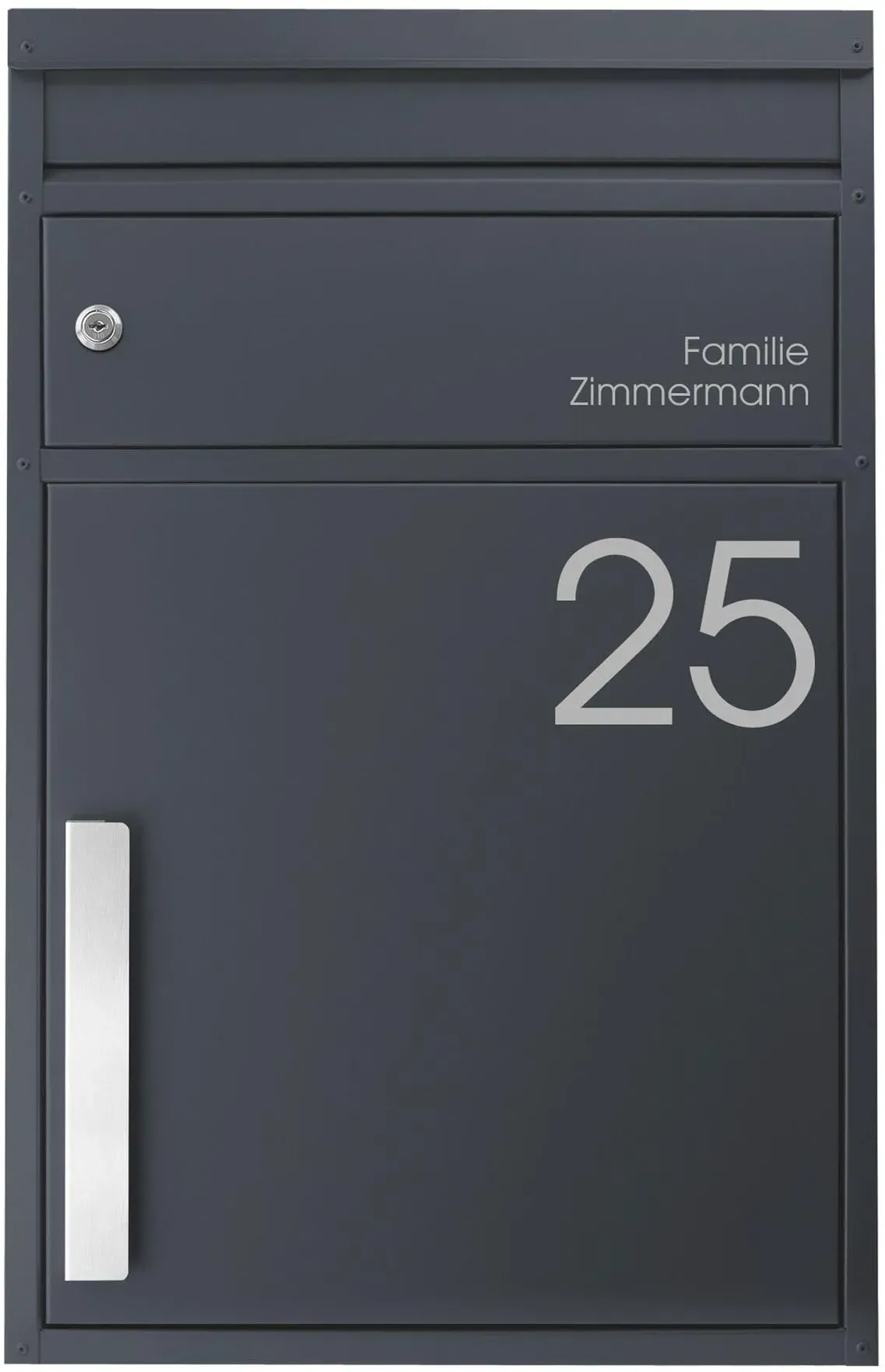 Gewöhnlich versandfertig in 3 bis 4 TagenSafePost Paket-Briefkasten anthrazit personalisiert wetterfest & sicher 45M Design-Paketkasten modern für alle Paketdienste Paketbox mit Briefkasten Standbriefkasten RAL 7016 Gross robust langlebig