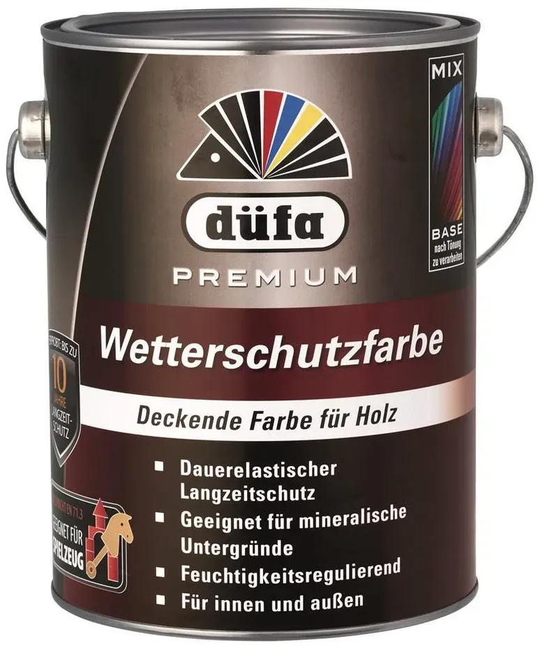lieferbar-in 2-3 Werktagen bei dirDüfa düfa Wetterschutzfarbe Premium Dauerschutzfarbe 2,5 l Holzfarbe Holzlack verschiedene Farben, Langzeitschutz und hoch witterungsbeständig braun