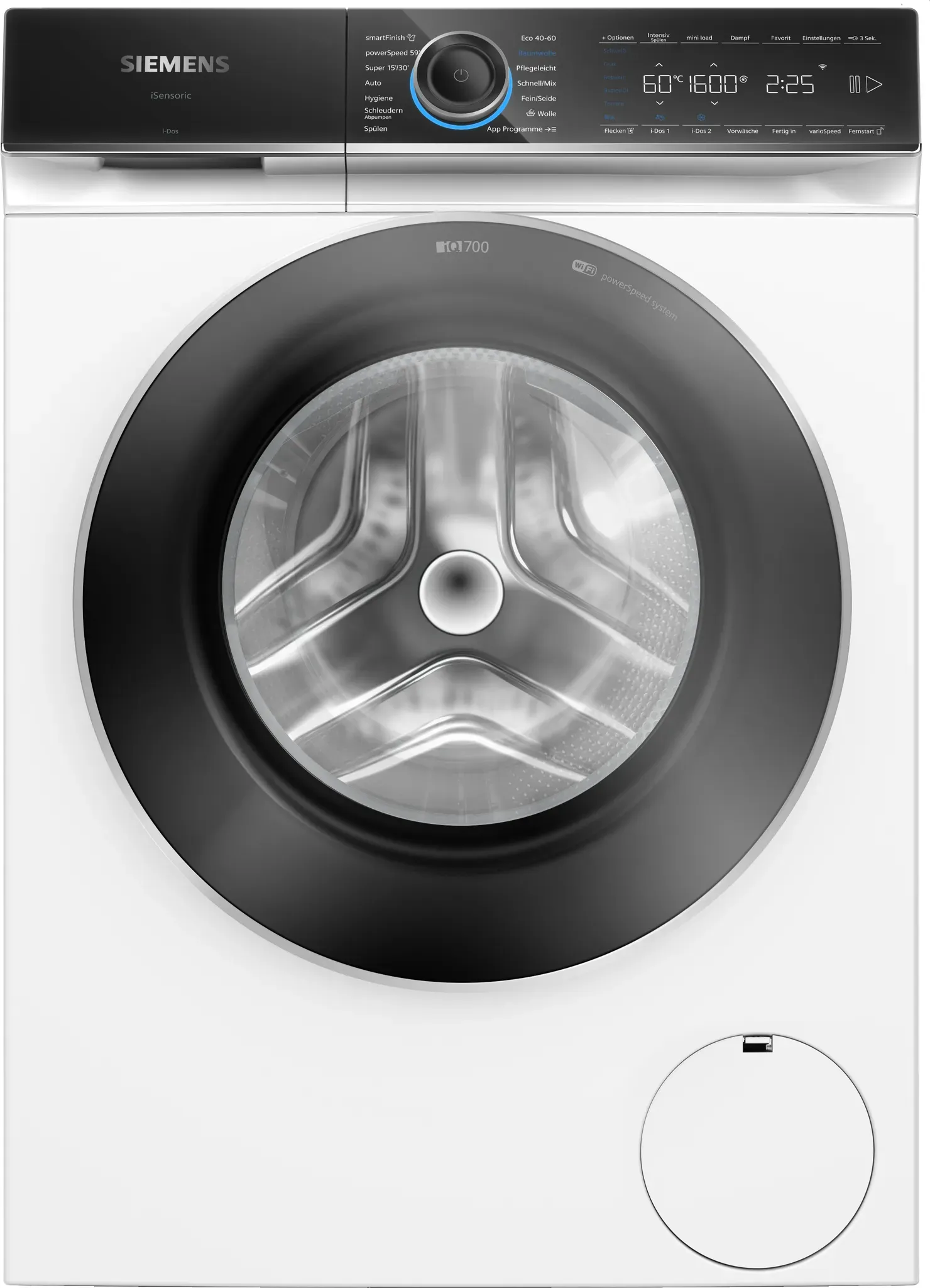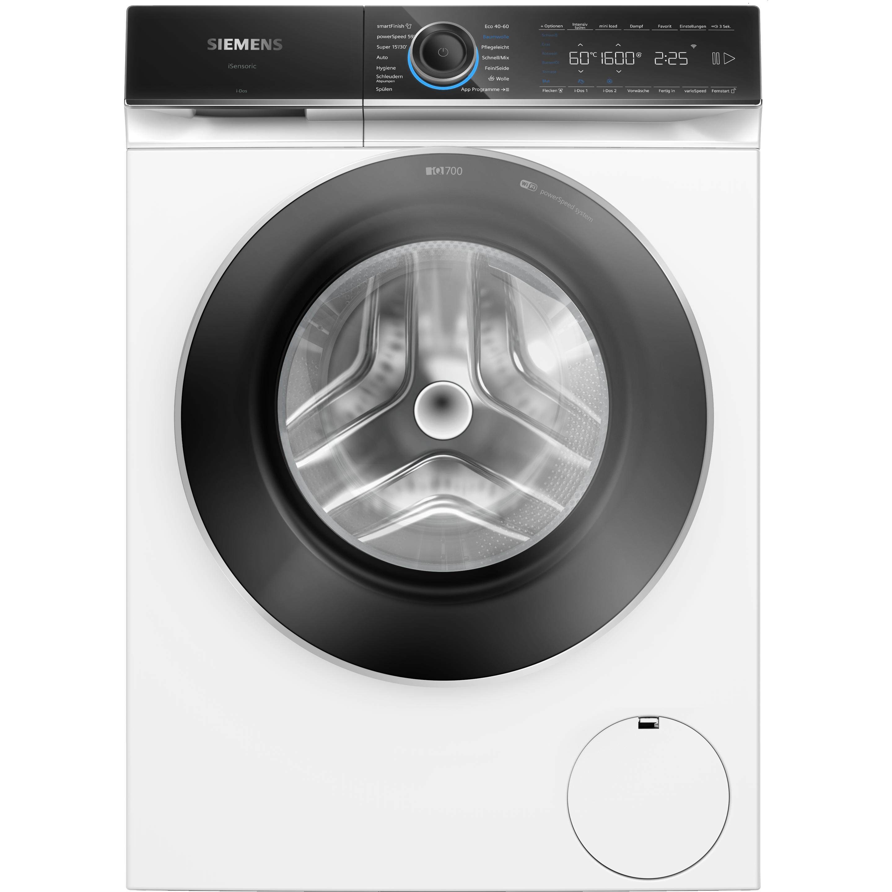 Zustand: Neu - Waschmaschinen - SIEMENS Siemens - WG56B2A41 - EAN: 4242003966129 - Eco-freundlich und wassersparend: Mit der WaterPerfect Plus-Technologie nutzt diese Siemens Waschmaschine Wasser extrem effizient, was nicht nur der Umwelt zugutekommt, sondern auch deiner Wasserrechnung. Genieße Spitzenleistung mit bis zu 30 % mehr Energieeffizienz als der Grenzwert der Klasse A Flecken keine Chance geben: Die Fleckenautomatik bietet dir spezialisierte Optionen, um selbst die hartnäckigsten Flecken ohne Vorbehandlung zu entfernen. Wähle einfach das passende Programm über die Home Connect App und lass deine Wäsche strahlend sauber werden Bügeln leicht gemacht: Mit der SmartFinish-Dampffunktion dieser Waschmaschine werden Knitterfalten um bis zu 40 % reduziert, was dir Zeit beim Bügeln spart. Ideal für Berufstätige, die immer top gepflegt aussehen wollen, ohne zusätzlichen Aufwand Schnell und effizient: Dank des PowerSpeed-Systems erzielst du bessere Waschergebnisse in kürzerer Zeit. Perfekt für den schnellen Lebensstil, wenn jede Minute zählt, ohne bei der Waschleistung Kompromisse einzugehen Komfortable Bedienung und Überwachung: Steuere deine Waschmaschine bequem über die Home Connect App von überall. Mit einer Größe von 84,5 cm x 59,8 cm x 59,0 cm passt dieses Gerät perfekt in deinen Haushalt und bietet modernste Technologie für deinen Alltag - 8 Händler im amazon.de Marketplace ![]() ![]() Siemens WG56B2A41 IQ700, iDos