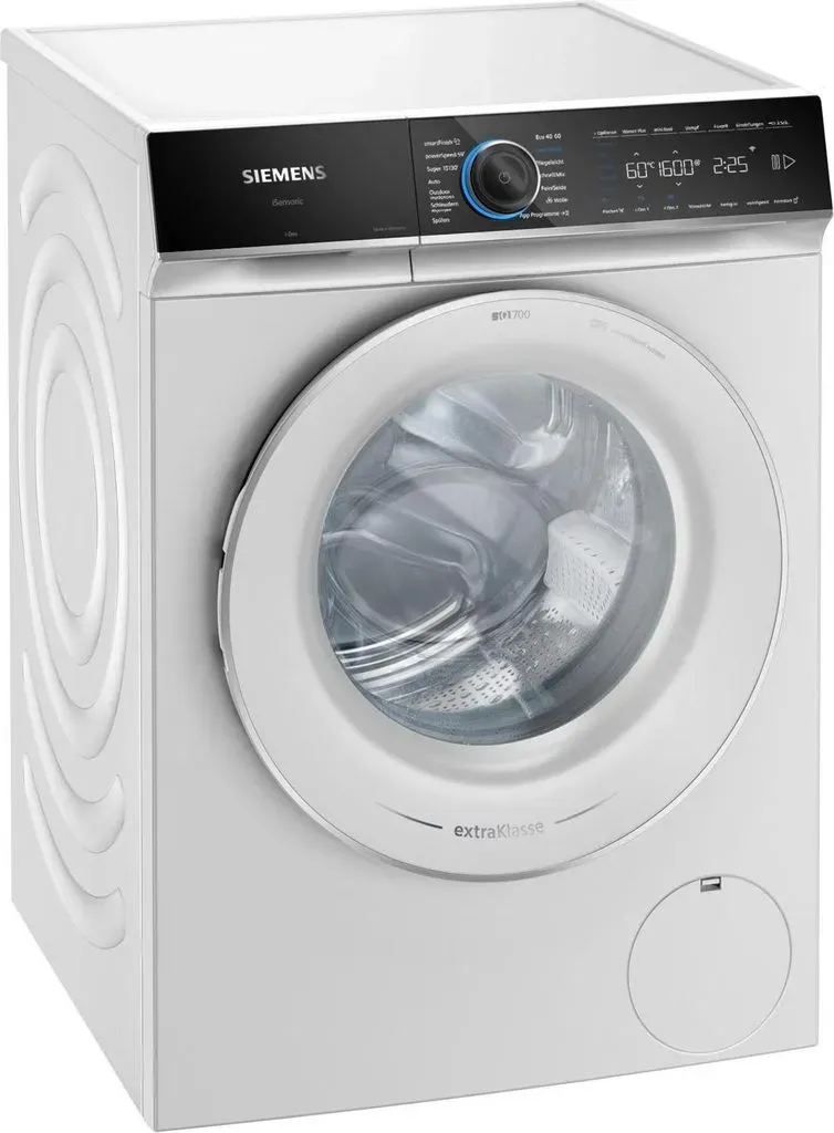 4 Händlerangebote bei billiger.de - EEK: A - Kategorie: Frontlader - Siemens - Wähle, wie lange der Waschgang dauern soll. Mit der zeitsparenden varioSpeed-Option kannst du den Waschgang beschleunigen oder ein Schnellprogramm (59, 30 oder 15 Minuten) wählen. Du kannst die Zeit aber auch über myTime manuell einstellen. Damit das Wäschewaschen in deinen Tagesplan passt. Bedienen deine Waschmaschine von wo du willst, wann du willst. Neue Technologien revolutionieren den Alltag, indem sie alle Lebensbereiche Schritt für Schritt vernetzter und intelligenter machen. Mit Siemens Hausgeräten und Home Connect profitierst du jetzt auch zu Hause von dieser Entwicklung. Die Kombination von WLAN-fähigen Hausgeräten, intelligenter Software und der intuitiven Home Connect App bietet dir eine Vielzahl einzigartiger Anwendungsmöglichkeiten. Einige erleichtern die Arbeit, andere eröffnen völlig neue Perspektiven €“ und alle machen deinen Alltag effizienter und angenehmer als je zuvor. So kannst du den Dingen Zeit widmen, die du liebst. Für das Außergewöhnliche im Leben. Behalte dein Gerät immer im Blick. Dank Home Connect ist Entspannung jetzt nur noch einen Klick entfernt: du kannst die Einstellungen deiner Waschmaschine im Auge behalten und erhälst Push-Nachrichten, sobald das gewählte Programm durchgelaufen ist. Wähle und starte Programme deiner Maschine über die Home Connect App. Deine Wäsche sollte sich deinem Zeitplan anpassen und nicht umgekehrt. Mit der Home ... ![]() ![]() Siemens WG56B2A91 - extraklasse - Waschmaschine, 10 kg, 1600 U/min, i-Dos-Aktion Halbjahresvorrat Ariel bis 31.12.25