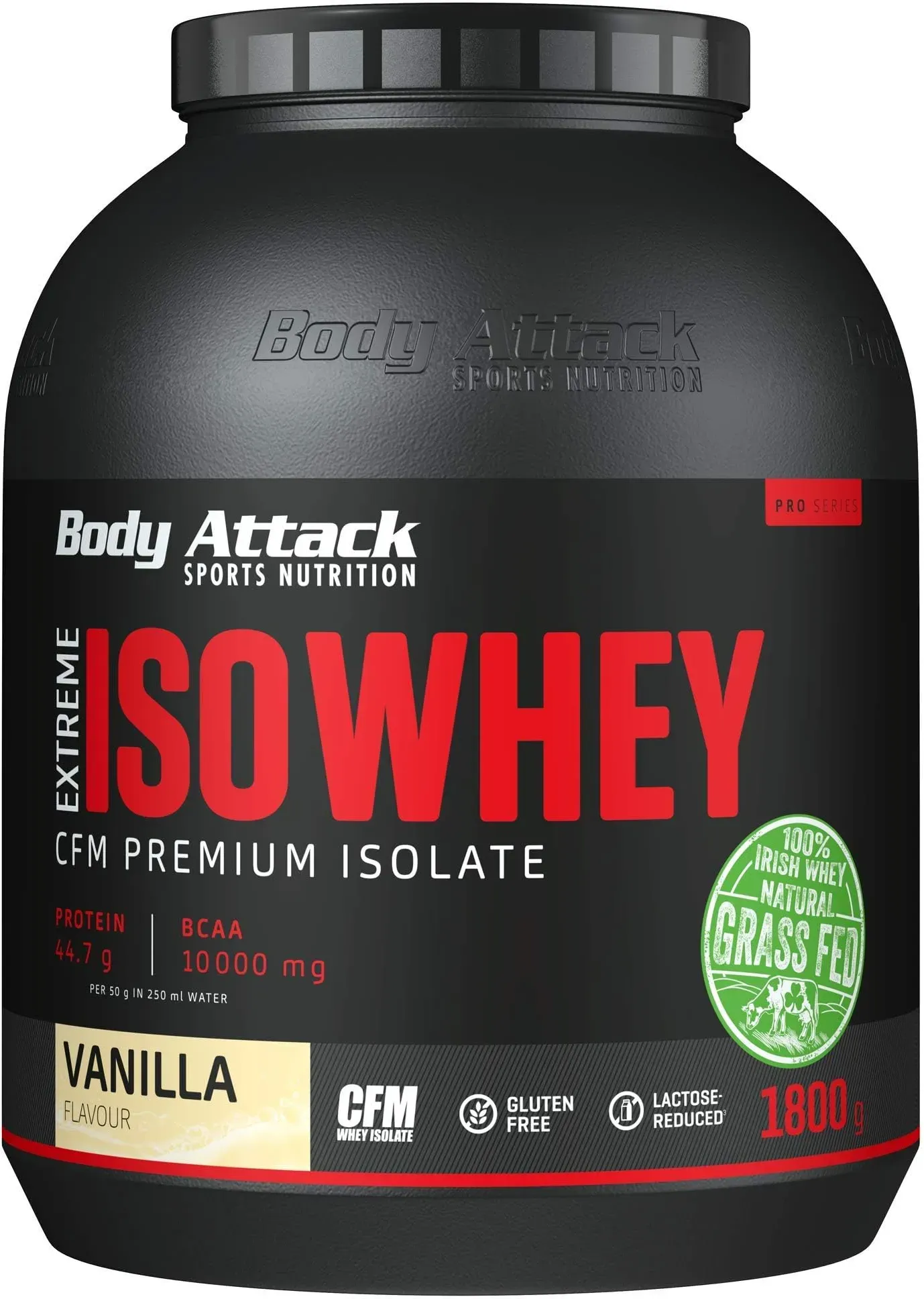 ![]() ![]() Body Attack Extreme Iso Whey, Neutral, 1,8 kg, CFM Whey Protein Isolat aus 100% irischer Weidemilch, glutenfrei, reich an EAAs, perfekt löslich, fettarm, ohne Aspartam, 90,6% Isolat-Anteil