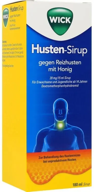 20 Händlerangebote bei billiger.de - Kategorie: Arzneimittel - WICK - Anwendungsgebiet von Wick Husten-Sirup gegen Reizhusten Mit HonigSuchen Sie nach einem Arzneimittel, das Ihren Reizhusten beruhigt? WICK Husten-Sirup gegen Reizhusten mit Honig lindert effektiv trockenen Husten. Die sorgfältig hergestellte Formulierung von Wick Husten-Sirup gegen Reizhusten Mit Honig enthält Dextromethorphan, einen bewährten Wirkstoff zur effektiven Linderung von Reizhusten. Dextromethorphan wirkt rasch bei trockenem und kratzendem Husten und sorgt für Symptomlinderung, die Sie am Tag oder in der Nacht spüren können. Formulierung mit Dextromethorphan für eine effektive Linderung von Reizhusten, die bis zu 6 Stunden lang anhält. WICK Husten-Sirup gegen Reizhusten mit Honig bietet Ihnen eine Hilfe, wenn Sie gelegentlich mit Reizhusten zu tun haben. Die Kombination von Wirksamkeit, einfacher Dosierung und Honiggeschmack verschafft angenehme Linderung von Reizhusten, wenn Sie Linderung benötigen. Wirkstoffe / Inhaltsstoffe / ZutatenWick Husten-Sirup gegen Reizhusten Mit Honig enthält: Der Wirkstoff ist Dextromethorphanhydrobromid. 15 ml enthalten 20 mg Dextromethorphanhydrobromid. Die sonstigen Bestandteile sind: Saccharose, Saccharin-Natrium, Propylenglycol, Ethanol 96%, Natriumcitrat-Dihydrat (Ph.Eur.), Citronensäure, Carmellose-Natrium, Polyethylenoxid-Natrium, Honig-Aroma L-166952 (enthält Propylenglycol, Honig, Honigaroma, Karamell, EDTA und gereinigtes Wasser), Menthoxypropanediol (TK ... Ein preislich attraktiver Wick Husten-Sirup in der 180 ml Größe von DocMorris. ![]() ![]() WICK Husten-Sirup 180 ml