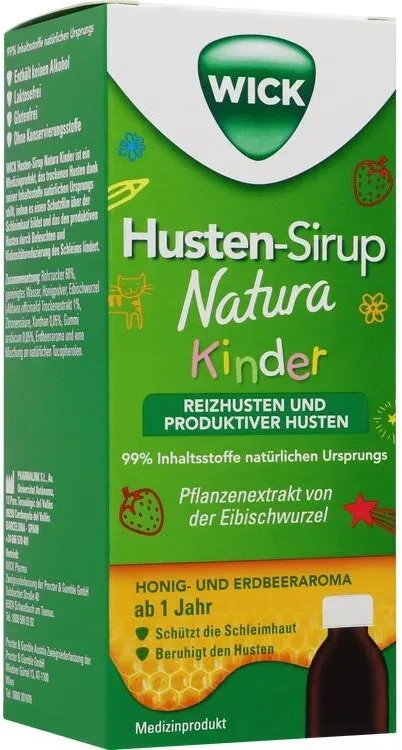 43,43 /l - Kategorie: Arzneimittel - WICK - GTIN:8700216421591 - PZN:19236805 - WICK Husten-Sirup Natura 140 ml - 6,08 Euro bei Apotal - gefunden von billiger.de Dieser Wick Husten-Sirup Natura Kinder ist eine gute Wahl für Eltern, die eine bewährte Marke suchen. ![]() ![]() WICK Husten-Sirup Natura Kinder 140 ml