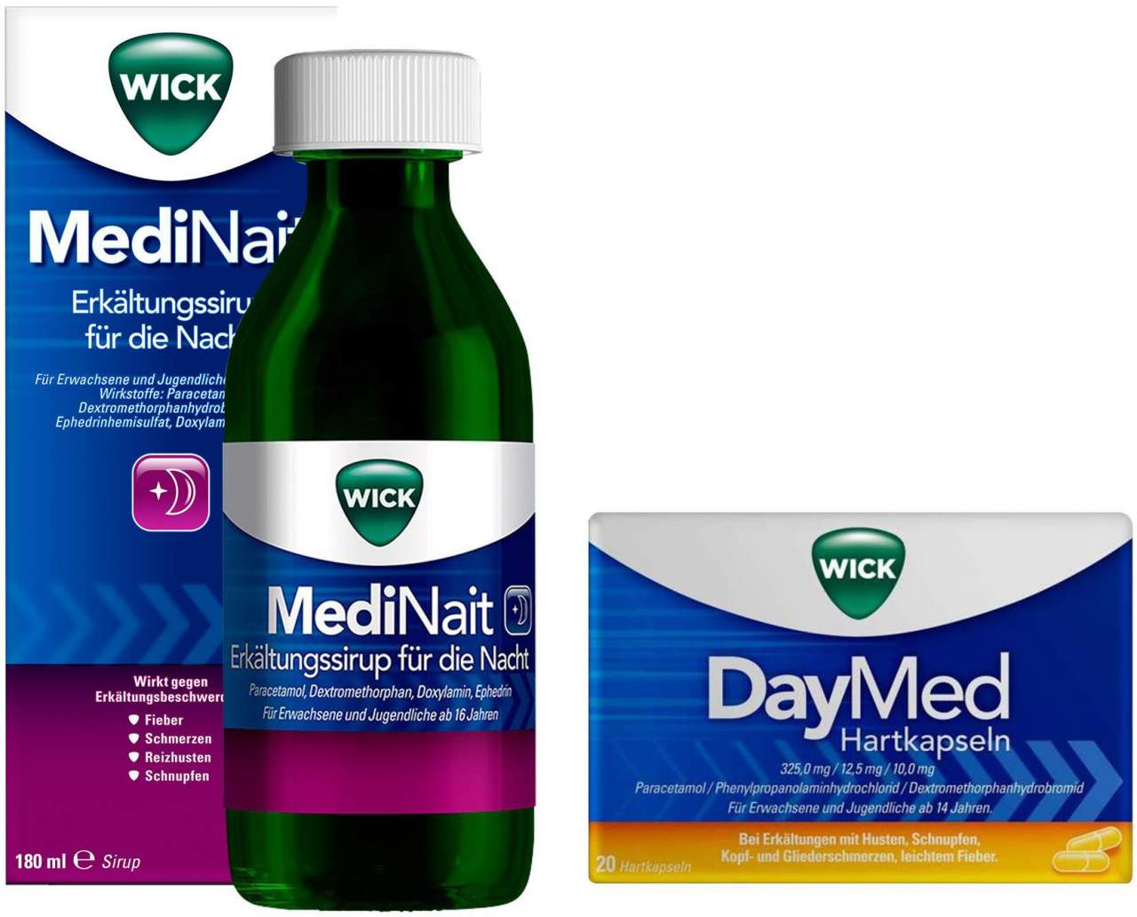 WICK - EAN: 4260397480274 - Sparset Erkältung Wick MediNait 180 ml & Wick Daymed 20 Kapseln - bei volksversand.de - aus Yadore Produktdaten Dieses Set bietet Wick MediNait zusammen mit Wick DayMed, ideal für die Rundumversorgung bei Erkältung. ![]() juvalis.de Wick MediNait Erkältungssirup für die Nacht 180 ml + Wick DayMed