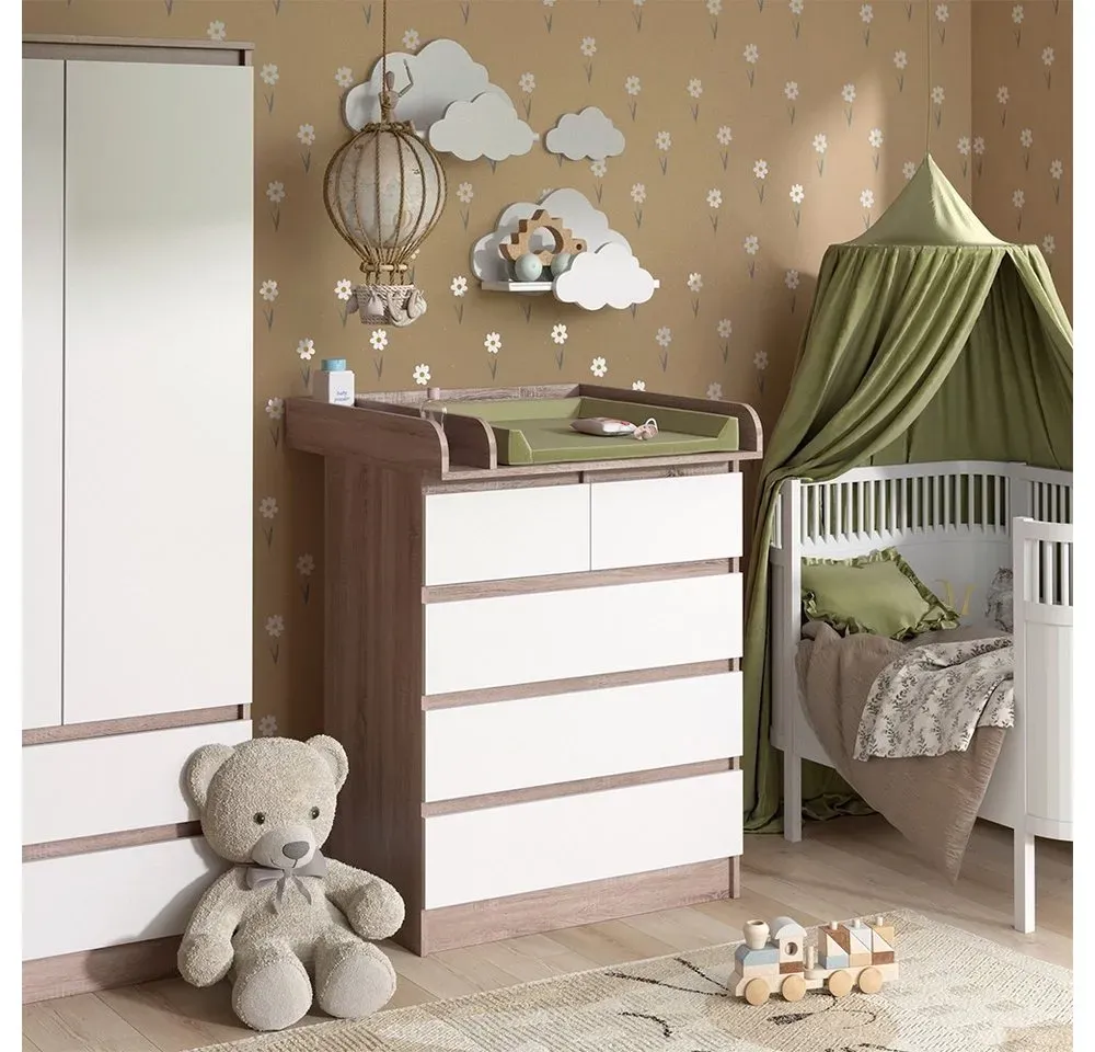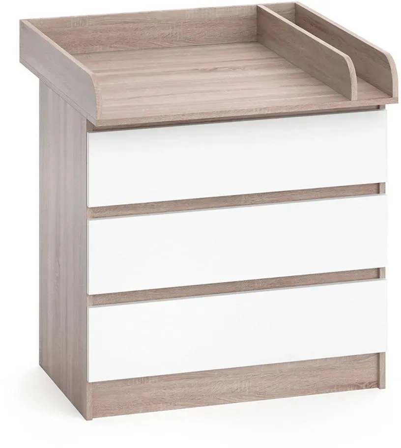 lieferbar-in 2-3 Werktagen bei dirVicco Wickelkommode Emma, Sonoma/Weiß, 80 x 110.2 cm mit 5 Schubladen weiß 80 cm x 110.2 cm x 76 cm