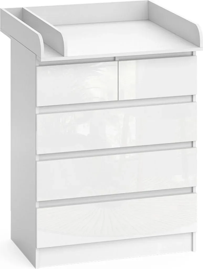 lieferbar-in 2-3 Werktagen bei dirVicco Wickelkommode Emma, Weiß/Weiß Hochglanz, 80 x 110.2 cm mit 5 Schubladen weiß 80 cm x 110.2 cm x 76 cm