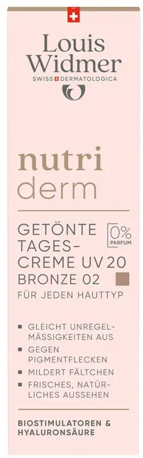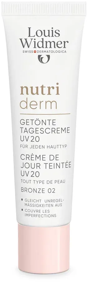 12 Händlerangebote bei billiger.de - Kategorie: Arzneimittel - Louis Widmer - WIDMER nutriderm getönte Tagescr.UV 20 bron.02 l.P 30 ml - GTIN:7611480013683 - PZN:18442098 Diese getönte Nutriderm Tagescreme UV 20 ohne Parfum bietet eine leichte Tönung und Sonnenschutz für einen ebenmäßigen Teint. ![]() ![]() Louis Widmer Widmer Nutriderm Getönte Tagescreme UV 20 02 ohne Parfum