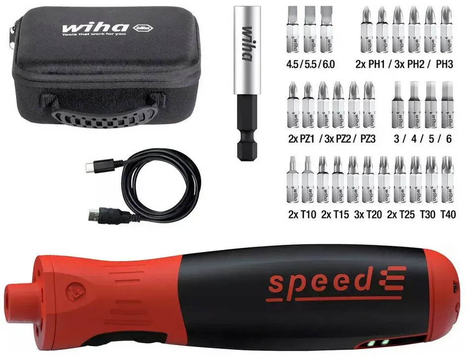 Kategorie: Schraubenzieher - Wiha - GTIN:4010995457914 - Maßangaben Länge , 10.00 cm, Breite , 5.00 cm, Höhe , 1.27 cm, Gewicht , 0.97 kg, Hinweise Hersteller , , - 69,38 Euro bei OTTO - gefunden von billiger.de contorion.de bietet ein 31-teiliges Set mit Bit-Set, Box und Tasche für 69.98 Euro an, was eine umfassende Lösung darstellt. ![]() ![]() Wiha elektrischer Schraubendreher speedE PocketDrive 31-tlg., mit Bit-Set in Box und Tasche, 1,0 Nm + 5,0 Nm, Akkuschrauber in Aufbewahrungsbox mit US (45791)