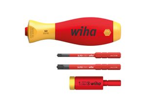 Kategorie: Schraubenzieher - Wiha - GTIN:4052741175871 - 'Einsatzbereich Der Drehmoment-Schraubendreher mit Quergriff Set eignet sich bestens zum kontrollierten Verschrauben bei vorgegebenem Drehmoment - ideal für die übertragung hoher Drehmomente. Beschreibung Der Drehmoment-Schraubendreher mit Quergriff TorqueVario®-S Tplus ermöglicht ein einfaches Zudrehen von Schrauben mit einem definierten Drehmomentwert über 5 Nm und das, anders als normale Drehmomentschraubendreher, ohne hohen Kraftaufwand. Dank der integrierten numerischen Skala und des beiliegenden Einstellwerkzeugs kann der Drehmomentbereich variabel eingestellt und somit ein großes Anwendungsgebiet abgedeckt werden. Das integrierte, deutlich hör- und fühlbare Signal beim Auslösen des Drehmoments gewährleistet ein prozesssicheres Arbeiten und schützt zudem vor Materialbeschädigungen und Nacharbeit. Eine Rutschkupplung, die in den Schraubendreher integriert ist, verhindert, dass der gewünschte Drehmomentwert überschritten wird. Das Drehmomentwerkzeug besitzt eine Auslösegenauigkeit von +/- 6% und erfüllt so die Anforderungen der DIN EN ISO 6789. Dank des komfortablen Quergriffs mit Weichzonen ist eine optimale Drehmomentübertragung gewährleistet. Neben dem Drehmoment-Quergriff sind außerdem 1/4\' und 3/8\' Innenvierkant-Adapterklingen, ein Bithalter-Adapter sowie sechs Einzelbits im Set enthalten. Der TorqueVario®-S Tplus ist mit den Wiha Wechselklingen für Drehmomentschraubendreher mit Quergriff (Serie 2899) ... Ein umfangreiches 19-teiliges elektrisches Set, das eine breite Palette an Schraubarbeiten abdeckt und sortiert geliefert wird. ![]() ![]() Wiha Drehmoment-Schraubendreher Set TorqueVario-S electric sortiert 19-tlg