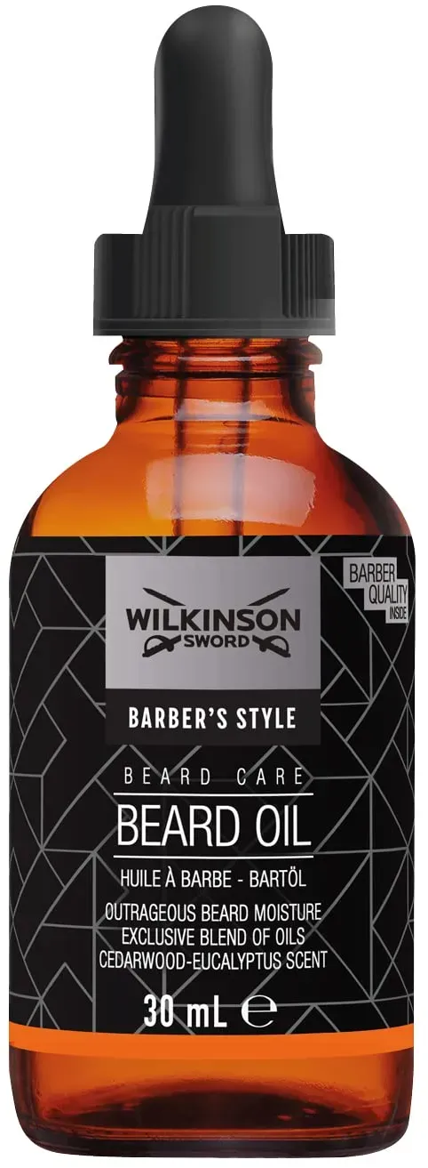 Zustand: Neu - 250,00 € / l - Öle Öle für Vorbehandlungen - Wilkinson Sword Edgewell Personal Care - W302161000 - EAN: 4027800135448 - BARBIER QUALITÄT: einzigartige Mischung aus natürlichen Ölen hilft den Bart weicher zu machen und ihm Feuchtigkeit zu spenden, bei allen Längen. PFLEGEERLEBNIS: Formel besteht aus reichhaltigem Argan-, Jojoba- und Avocadoöl, das dabei hilft einem trockenen und juckenden Bart vorzubeugen. ERDIGER UND MARKANTER DUFT nach Zedernholz & Eukalyptus - 6 Händler im amazon.de Marketplace ![]() ![]() Wilkinson Sword - Barber's Style Für Männer | Bartöl | 30ml