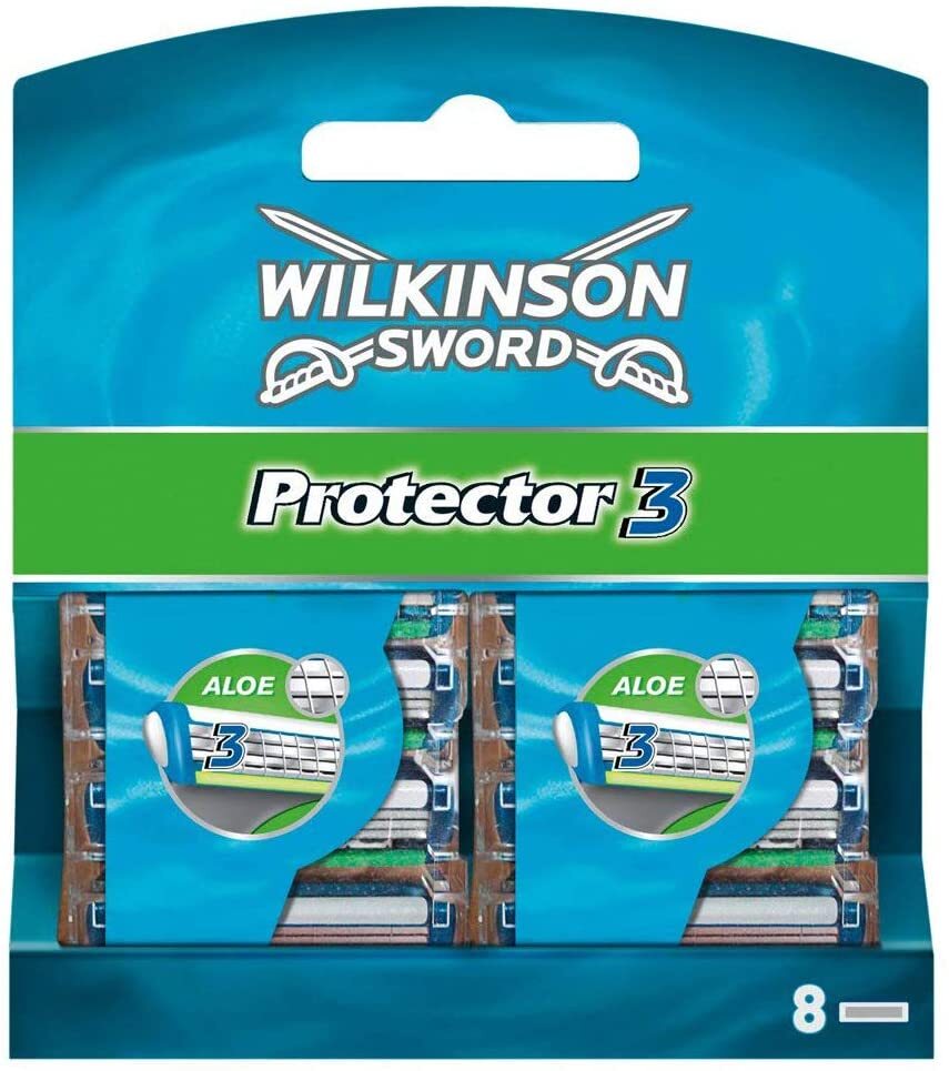 EAN: 4027800513604 - Wilkinson Protector 3 Klingen 8 Stück in einer Packung für den MannSanft, sicher und gründlich: Die Wilkinson Protector 3 Klingen mit Diamant Beschichtung sorgen für eine besonders schonende und sanfte Rasur. Mit Hilfe des Aloe Vera-Gleitstreifens gleitet der Rasierer angenehm über die Haut.Diese Klingen können mit dem Wilkinson Protector Apparat verwendet werden.Wilkinson Sword GmbH Schützenstraße 110 42659 Solingen Deutschland Wilkinson Sword GmbH Schützenstraße 110, 42659 Solingen Inhaltsstoffe: Aloe Barbadensis, PVP, Tocopheryl AcetateVerwendungshinweise: Für eine sichere Rasur zunächst Rasiermousse oder Rasiergel auf die zu rasierende Hautpartie auftragen und sorfgältig einmassieren. Die Klingen immer nur leicht und behutsam über die Haut führen und niemals Druck ausüben. Geeignet für:MännerMarkenkompatibilität:Wilkinson SwordKompatibilität:Protector 3Anzahl der Klingen:3Produktfarbe:Blau, WeißMenge pro Packung:8 Stück(e) Produktbeschreibung: / Die Wilkinson Sword Protector Wechselklingen für Herrenrasierer bieten Ihnen einen Komplettsatz von 8 erstklassigen Klingen, die für Schutz und Präzision bei jedem Zug sorgen. Gönnen Sie sich die Qualität und Leistung von Wilkinson Sword für ein erstklassiges Rasiererlebnis. Wilkinson Protector 3 Ladegerät mit 8 Klingen Die patentierte Alpha-Diamond-Beschichtung lässt die Klingen lange scharf, wodurch eine besonders schonende und sanfte Rasur ermöglicht wird. Dabei bietet die spezielle ... Ein weiteres gutes Angebot für Damen mit 10 Lady Protector Klingen. ![]() ![]() Wilkinson Sword Lady Protector Rasierklingen für Damen Rasierer, 10 St