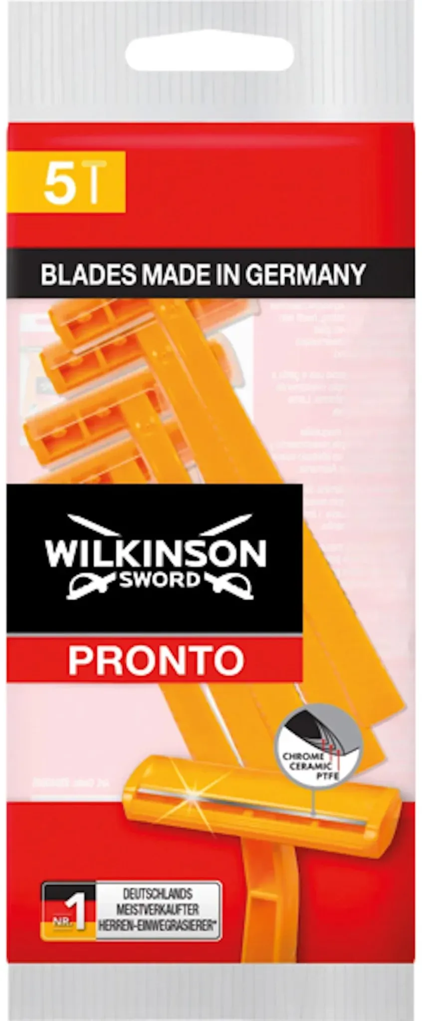 Zustand: Neu - 0,37 € / stück - Rasierer Damenrasierer - Wilkinson Sword Wilkinson Sword GmbH - 7000801N - EAN: 4027800080106 - Bald ist er der meistverkaufte Einwegrasierer in Deutschland. Mit seinem feinen Rasierkopf fördert der Rasierer eine optimale Rasur, auch an Problemzonen. Die Klinge mit Chrom, Keramik und PTFE bleibt lange scharf und gleitet sanft über die Haut. Jetzt auch neu mit verbesserter Textur für besseren Halt, offene Seiten innen für optimalen Wasserfluss und einen neuen Winkel für bessere Ergonomie. - Verkäufer: Mega-Paradies GmbH im amazon.de Marketplace ![]() ![]() Wilkinson Sword Pronto Herren Einwegrasierer, 1 x 5 St