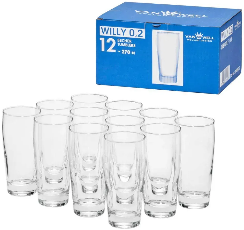 Verfügbarkeit: Auf Lager - Kategorie: Gläser - Pasabahce - GTIN:8693357513594 - Willibecher im Karton a 12 Stück mit Eichstrich 0,3 L Max Kapazität 0,37 L // Maße H 14,8 x Ø 5,3 cm Spülmaschinenfest Hitzebeständig bis 70 Grad Sehr robuste Gläser für den Innen & Außenbereich - 13,10 Euro bei Amazon Marketplace Home - gefunden von billiger.de Ein preiswertes 12-teiliges Set von VAN WELL mit 0,2 l Fassungsvermögen, ideal für den täglichen Gebrauch. ![]() ![]() VAN WELL Willybecher Bierglas 0,2 l 12-tlg.