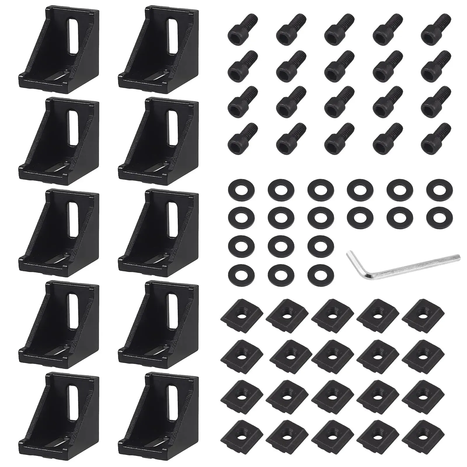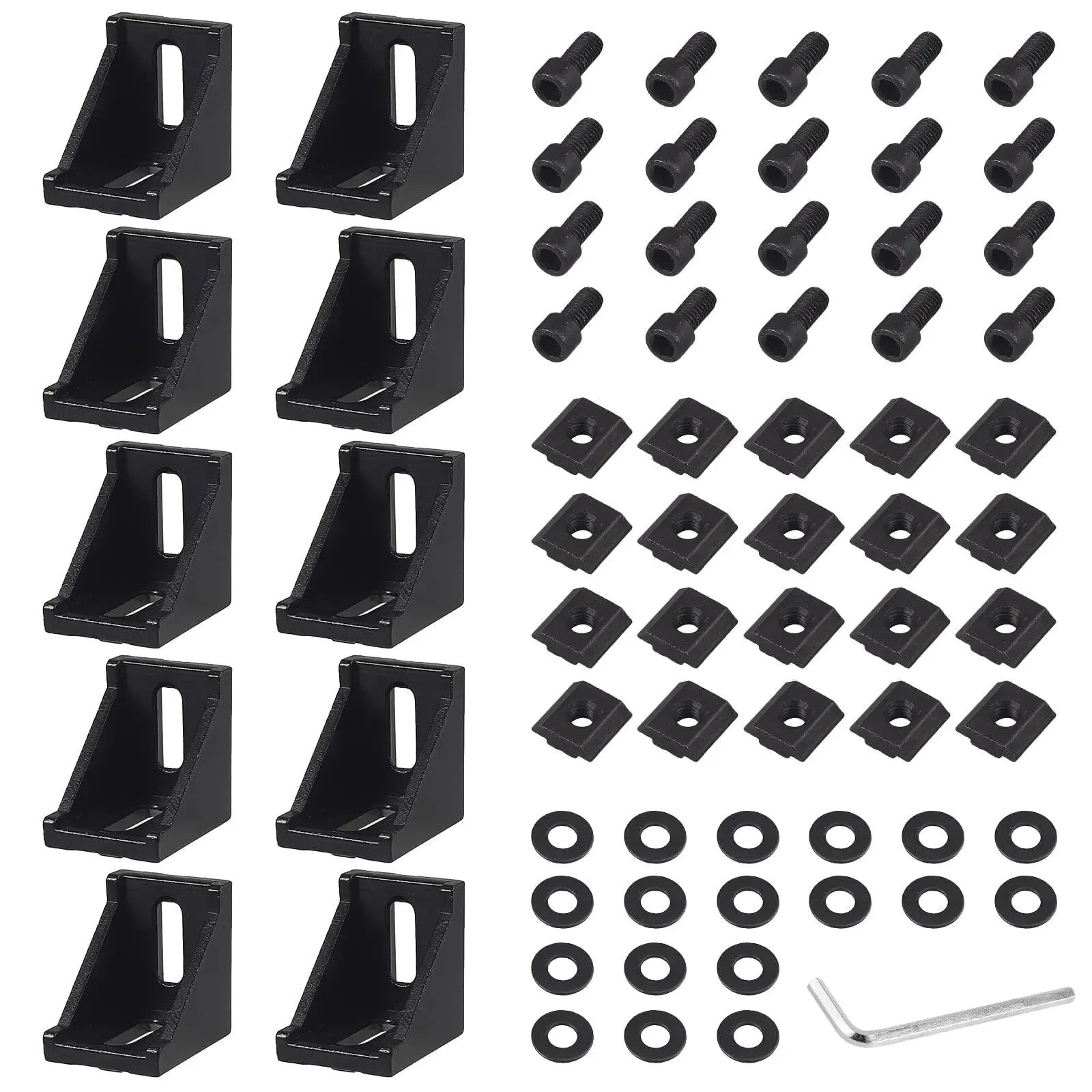 Auf Lager Versand durch AmazonSUPAWAY 20 Stück Innenwinkel Winkelverbinder Aluprofil 3030 T-Nut 90° L-Form Profil Aluminium Winkel T-Slot Eckverbinder für 30er-Serie Europäischer Standard-Aluminium-Profil mit 40 Schrauben, Schwarz