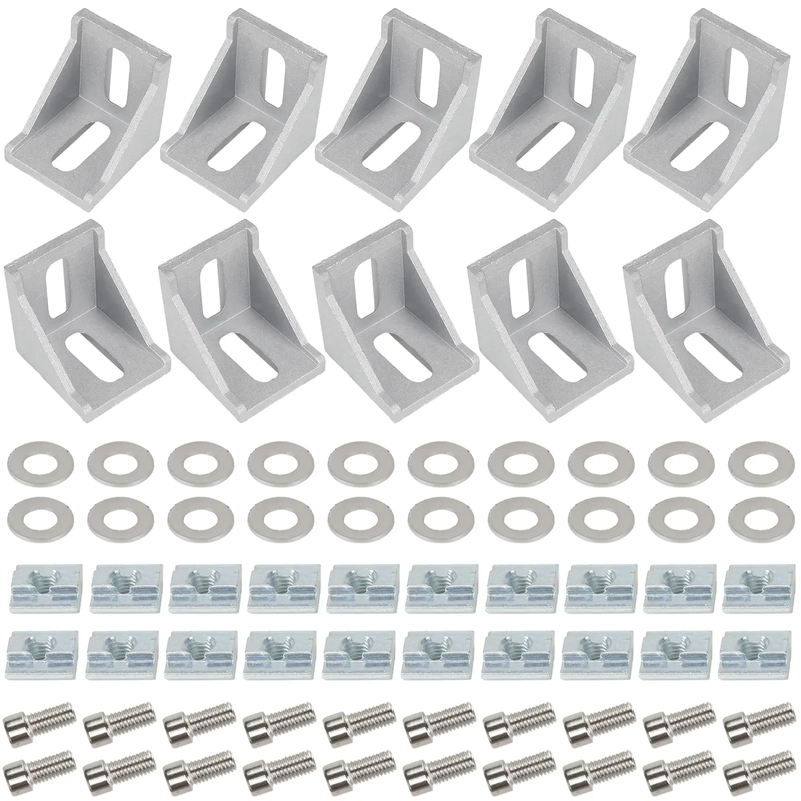 Auf Lager Versand durch AmazonNAHUAA 10 Stück Befestigungsmaterial Winkel Aluprofil 40x40 Nut 8 M8 Eckverbinder Winkelverbinder Aluprofil Winkel Befestigung Aluminium für Regale Geräteständer Wandhalter Montagematerial