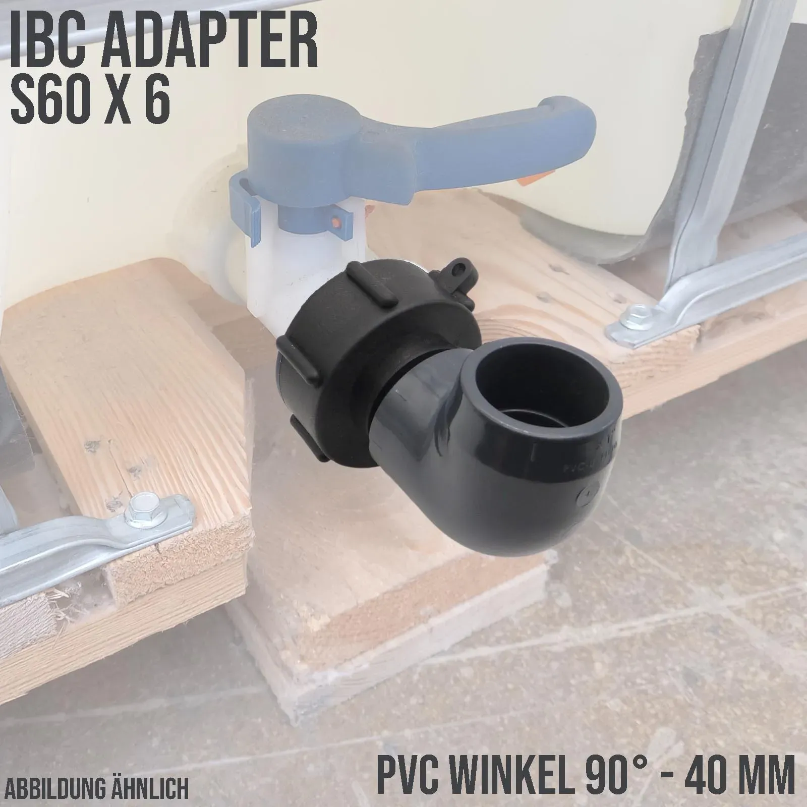 Sofort verfügbar, Lieferzeit: 1-3 WerktageDeinSchlauch24 IBC Container Anschluss Adapter Set S60 x 6 -> 40 mm PVC Winkel 90