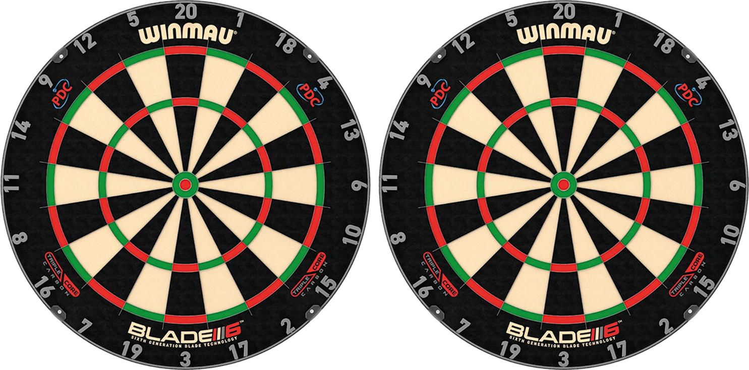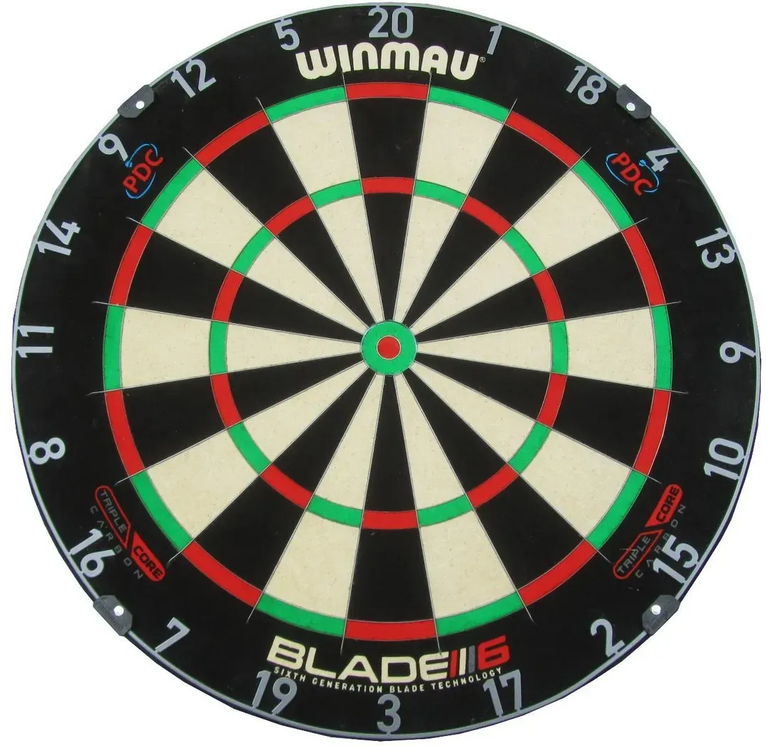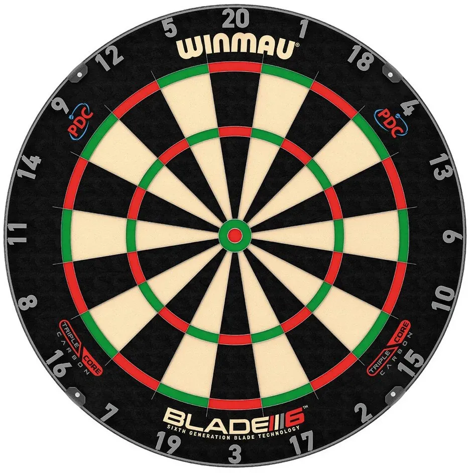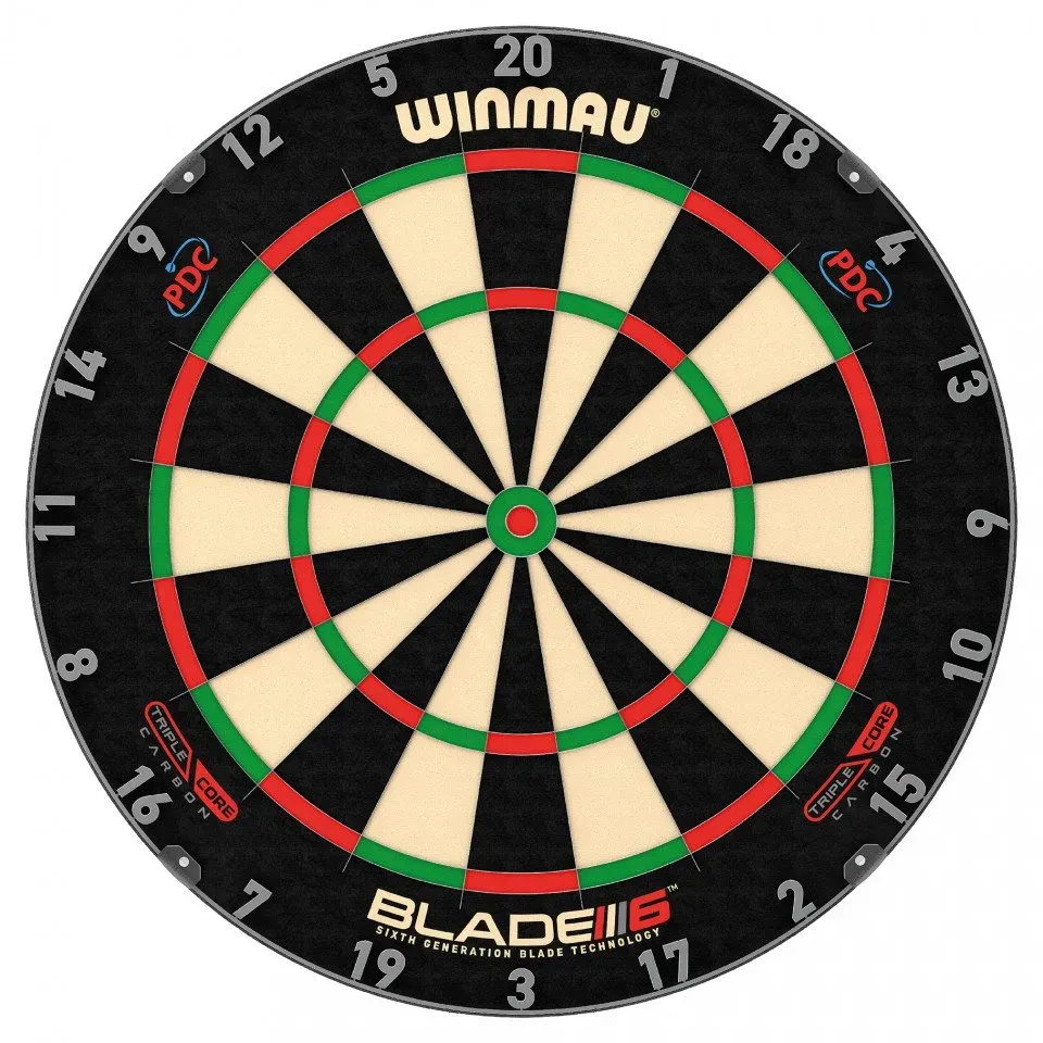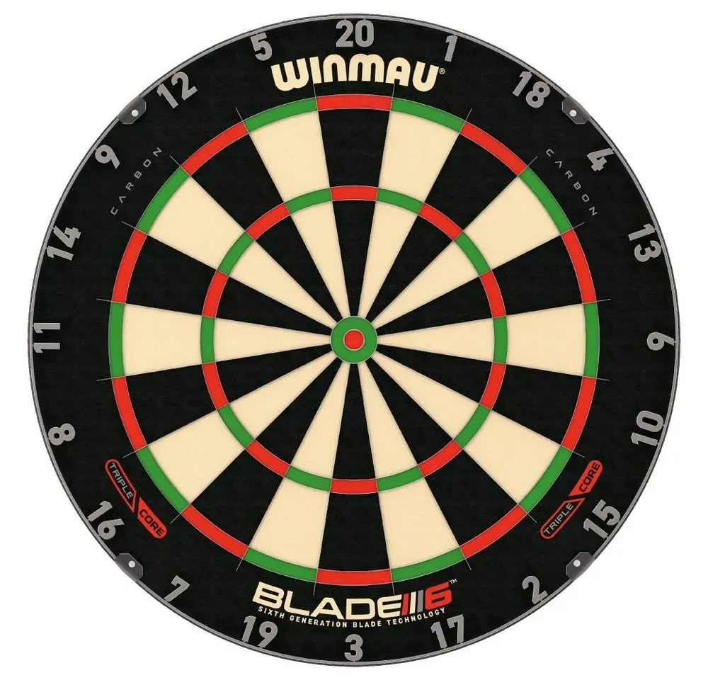 Zustand: Neu - Klassische Dartboards - WINMAU - wmb0043 - EAN: 0502323101322 EAN: 5023231013224 - PROFESSIONELLE DARTSCHEIBE - WINMAU Blade 6 Triple Core Die Winmau Blade 6 Triple Core Dartscheibe ist die gleiche Steeldartscheibe, die bei PDC-Profiturnieren und Live-TV verwendet wird - Profiqualität für ambitionierte Spieler. DREIFACHKERN-SISALBODEN - WINMAU Blade 6 Triple Core Dartscheibe Das revolutionäre Mehrschichtdesign der Steeldartscheibe sorgt für perfekte Faserdichte, müheloses Eindringen, hohe Haltbarkeit und maximales Scoring-Potenzial. KLINGENTECHNOLOGIE DER 6. GENERATION - WINMAU Blade 6 Triple Core Dartscheibe Der Density Control Draht der Steeldartscheibe sorgt für präzisen Halt und Treffsicherheit. Bullseye und Outer Bull sind gehärtet und 25€¯% dünner für optimale Genauigkeit. ULTRA DÜNNER, 60°-WINKELDRAHT: Reduziert Abpraller, indem die Darts gezielt in den Trefferbereich geleitet werden, und sorgt so für höhere Genauigkeit und konstante Leistung bei jedem Wurf. ROTA-LOCK-MONTAGESYSTEM: Einfach verstellbar für jede Wand, für schnelle und sichere Montage. In wenigen Minuten spielbereit wie ein Profi. Blade 6 ist turnierzugelassen und erfüllt die offiziellen Spezifikationen der WDF. - 16 Händler im amazon.de Marketplace Dieses Angebot ist eine Standard-Dartscheibe zu einem fairen Preis und wird von der PDC empfohlen, was für Qualität spricht. ![]() ![]() WINMAU Blade 6 Triple Core Carbon Dartscheibe Steeldart Profi Dartboard €“ Offizielle Turnierspezifikationen, von der PDC empfohlen