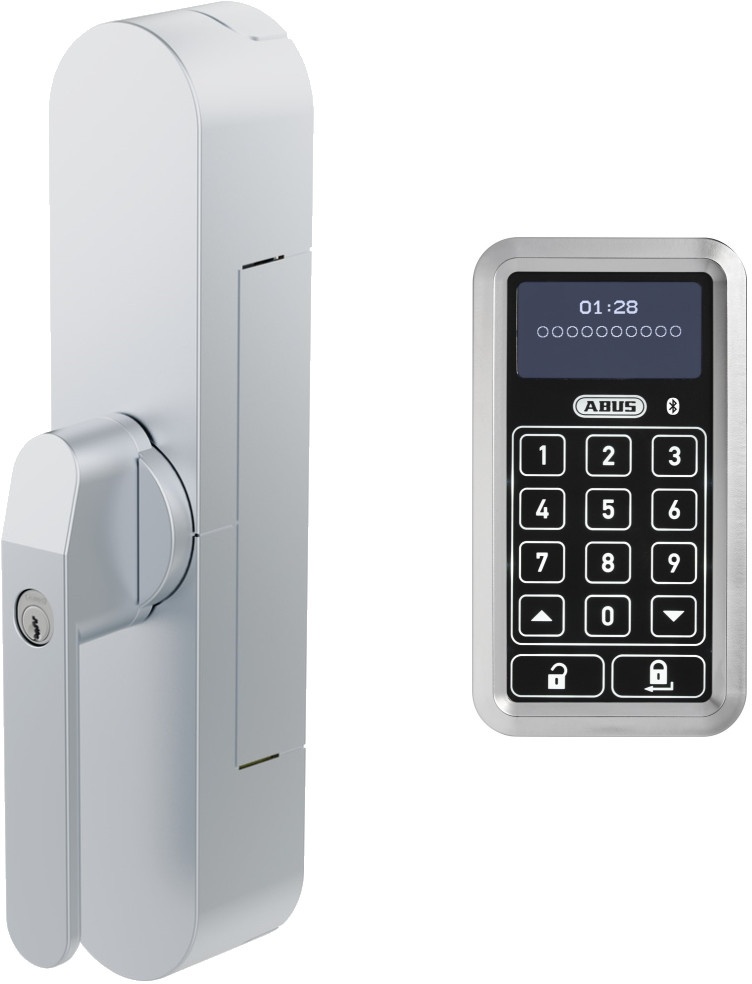 Kategorie: Fenstergriffe - ABUS - GTIN:4003318593475 - Elektronisches öffnen von Fenstern, Terrassentüren oder Balkontüren: geeignet für nach innen öffnende Fenstertüren mit 7 mm Vierkant-Stift und einem Dornmaß von mindestens 30 mm - der smarte Antrieb macht deine Terrassentür zum zweiten Eingang Komfortable Bedienung: mit der kostenlosen ABUS One App auf dem Smartphone oder der Smartwatch öffnest und verriegelst du deine Terrassentür automatisch - optional erhältlich sind Fernbedienung, Fingerscanner, Zahlencode-Tastatur Einfache Montage: weder Bohren noch Kabelziehen sind nötig - der Fensterantrieb nutzt die Schraublöcher des bisherigen Fenstergriffs und wird über austauschbare Batterien (6 x AA-Batterien sind enthalten) mit Strom versorgt Mit Alarmfunktion: frühzeitige Alarmierung bei Einbruchsversuchen dank 3D Alarm-Sensorik - einstellbare Lautstärke des Alarmtons bis zu 110 dBA - dank BRIDGE One mit Push-Nachrichten via Internet auf das Handy; bei Alarm oder anderen Ereignissen Weitere Details: von Innen bleibt das öffnen und Schließen per Hand möglich - innen mit Schlüssel schließbar - teile den Zugriff mit Familie und Freunden teilen; sende Einladungen per App oder richte mit separatem Zubehör individuelle Zugänge ein - 364,85 Euro bei Amazon Marketplace Home Improvement - gefunden von billiger.de Ein Bluetooth Fensterantrieb in Silber inklusive Tastatur von werkzeug-guenstig.eu, der eine zusätzliche komfortable Bedienoption bietet. ![]() ![]() Abus Bluetooth Fensterantrieb WINTECTO ONE in silber - inklusive Tastatur