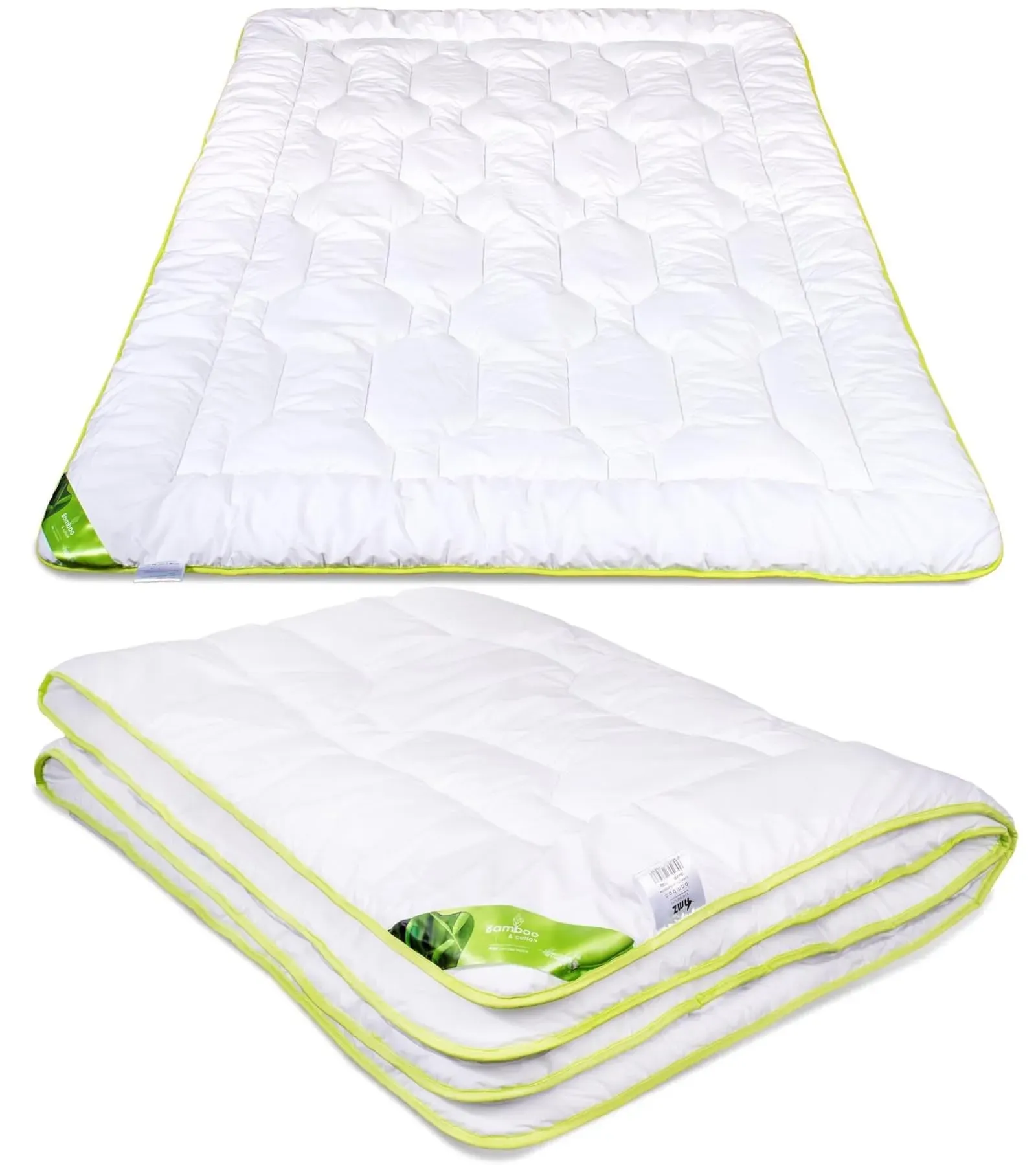 Kategorie: Winterdecken - Sonstige Verlage - GTIN:5907803174066 - AMZ BAMBUS-STEPPDECKE 100 % 220 x 200 cm WARM PREMIUM BAMBUS 100 % 2000 g BAMBUS BAUMWOLLGARN HöCHSTER QUALITäT MIT EDLER BAMBUSGEWEBE, VEREDELT MIT DEM ANTIBAKTERIELLEN SILVER PROTECTION SYSTEM. Aus Baumwollgarn gewebter Batist ergibt einen Stoff mit dichter Webart und charakteristisch zarter Textur. Die Verwendung von hochwertigem, ausgewähltem Garn ermöglicht einen Effekt außergewöhnlicher Weichheit und Zartheit. Der Stoff ist mit dem SILVER PROTECTION-System veredelt er ist mit Milliarden von Silberpartikeln überzogen, die antibakterielle, antimykotische und schimmelhemmende Eigenschaften haben. Neben zusätzlicher Sicherheit verleiht dieses System dem Stoff einen dezenten, eleganten Glanz. Die Kollektion gehört zur exklusiven Linie und zeugt von der hohen Qualität der bei der Produktion verwendeten Materialien. Antiallergisches Produkt, mit Liebe zum Detail hergestellt. Hochwertiger, strapazierfähiger Bezugsstoff Baumwollinlett ein einzigartiger Batist mit einer Grammatur von 70 g/m2, veredelt mit der Formel SILVER PROTECTION AMZ LUXFILL eine mehrkanalige, hochelastische Faser in Form eines hochelastischen Vliesstoffs Elegante Verpackung. Waschbar sogar bei 60 C. Produkte der BATYST-Kollektion sind leicht, warm und widerstandsfähig. Vollständig aus natürlichen Rohstoffen und Materialien hergestellt, filtern sie die Luft und halten gleichzeitig die Körpertemperatur angenehm. Außerdem absorbieren und ... Eine Premium-Bettdecke mit 70% Gänsedaunen und hohem Füllgewicht, die für luxuriöse Wärme und Komfort steht. ![]() ![]() Sonstige Verlage Bettdecke GäNSEDAUNEN 70% 220x200 Basic Plus 2500g PREMIUM weiß Warm