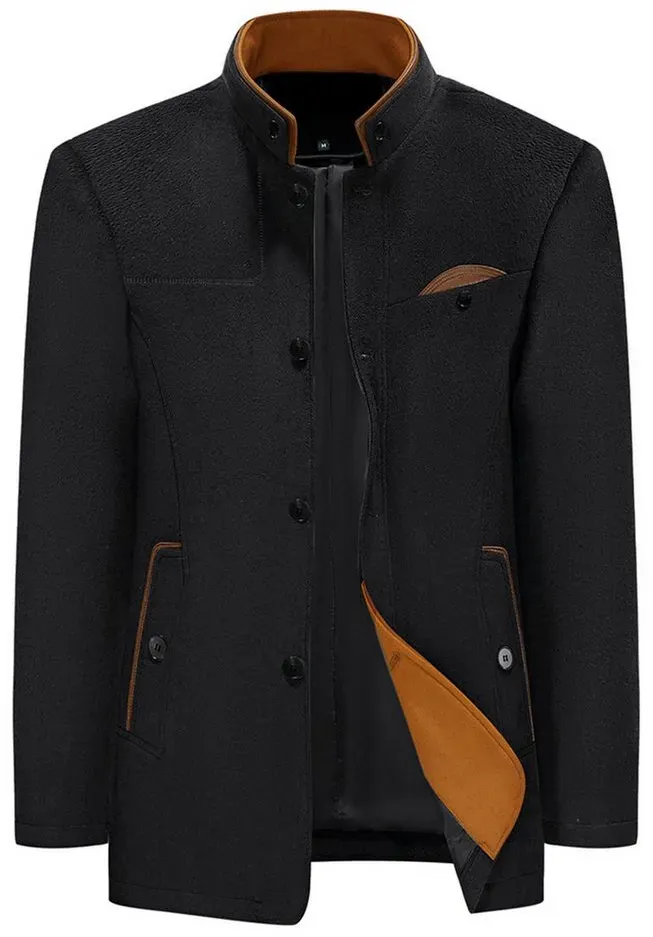 lieferbar-in 3-4 Werktagen bei dirAllthemen Wollmantel mit Stehkragen Wintermantel Herren warmer Kurzmantel schwarz 3XL