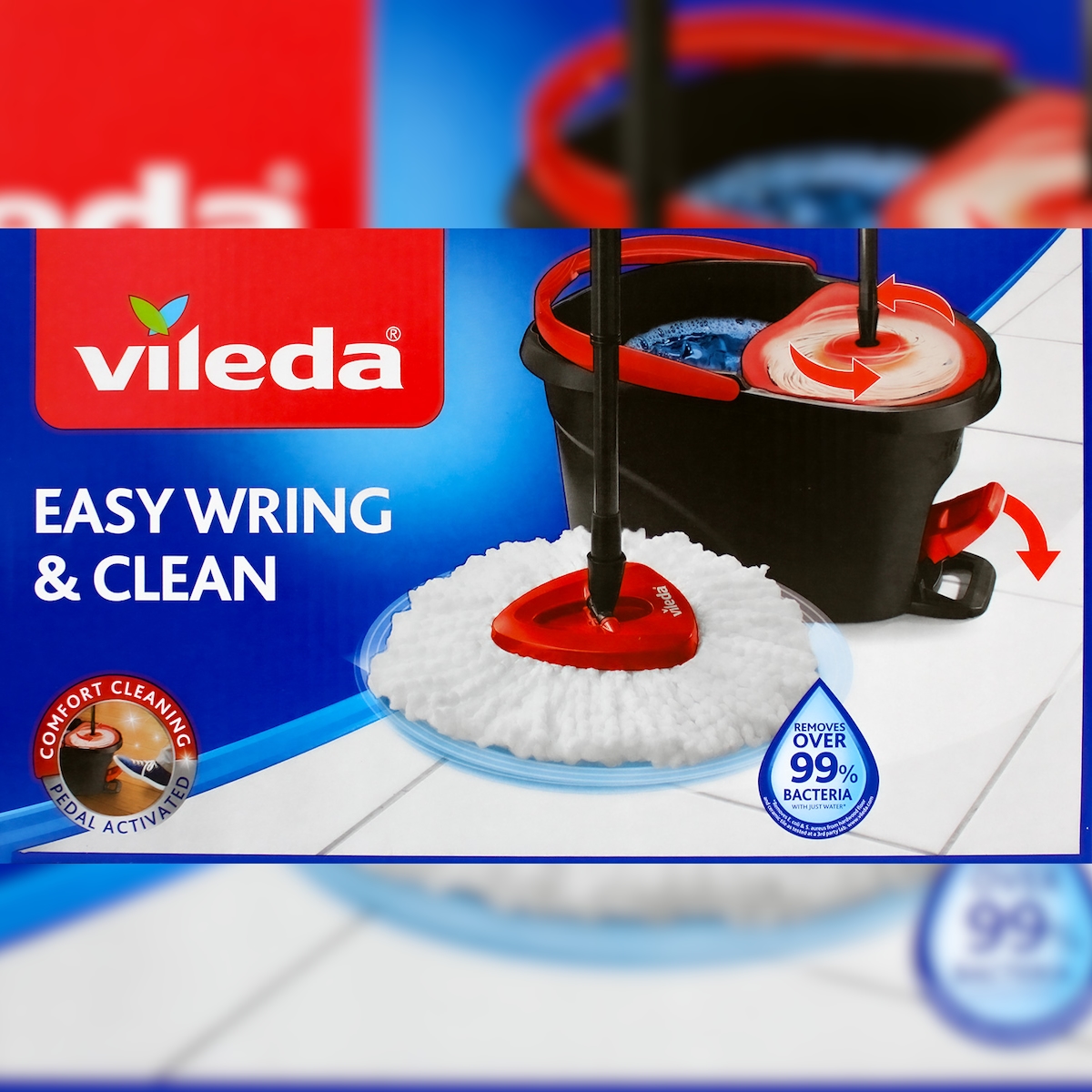 Zustand: Gebraucht - Mopp- & Eimersets Kommerzielle Mopp- & Eimersets - Vileda - 178332 178333 - EAN: 4023103254237 - H2PRO SPIN MOP KOMPLETT SET - Das innovative Vileda Set enthält einen Eimer mit Zweitanksystem und Powerschleuder, Wischer mit Teleskopstiel (123 cm), sowie einen hochwertigen Mikrofaser-Wischkopf MÜHELOSES AUSWRIGEN MIT PEDAL - Das innovative Pußpedal ersetzt das Auswringen von Hand und ermöglicht eine effiziente Feuchtigkeitskontrolle - Je mehr Pedaltritte, desto trockener das Ergebnis IMMER SAUBERES WASSER - Patentierter Doppelkammer-Eimer mit getrennten Tanks für sauberes und schmutziges Wasser - Hebel einmal anheben & offen lassen für kontinuierlichen Zufluss von sauberem Wasser FÜR SCHWER ERREICHBARE STELLEN - Dank seines flexiblen, dreieckigen Designs erreicht der Wischkopf mühelos jede Ecke und Bereiche unter Möbeln für eine gründliche Reinigung ohne umständliche Manöver. MIKROFASERREINIGUNG - Der Mikrofaser-Wischkopf ermöglicht eine hervorragende Schmutzaufnahme, sodass alle Hartböden (Holz, Laminat, Fliesen, Vinyl und mehr) im Nu sauber und streifenfrei glänzen WASCHEN UND WIEDERVERWENDEN - Wischkopf bei max. 30 °C waschen und wiederverwenden, alle 6 Monate wechseln für ideale Reinigungsergebnisse - Ersatzkopf nicht kompatibel mit anderen Vileda-Systemen VERFÜGBARE ERSATZKÖPFE - Bitte beachten: Nur H2PrO Ersatzköpfe sind mit dem H2PrO Spin Mop kompatibel. Andere Vileda Ersatzköpfe können nicht in Kombination mit diesem 2-Tank-System verwendet ... Das Vileda EasyWring Clean Wischmop Set ist eine bewährte Lösung für hygienische Sauberkeit mit integrierter Auswringfunktion. ![]() Vileda EasyWring Clean Wischmop Set