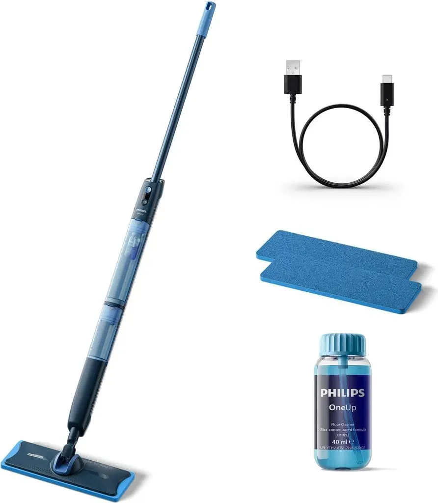 vorrätig-in ein bis drei Werktagen bei dirPhilips Akku-Wischmopp OneUp elektrischer Wischer 5000 Series XV5113/01 70 min Akku-Laufzeit, inkl. 1 Pad und 40 ml Reiniger, 59782963-0 Blau