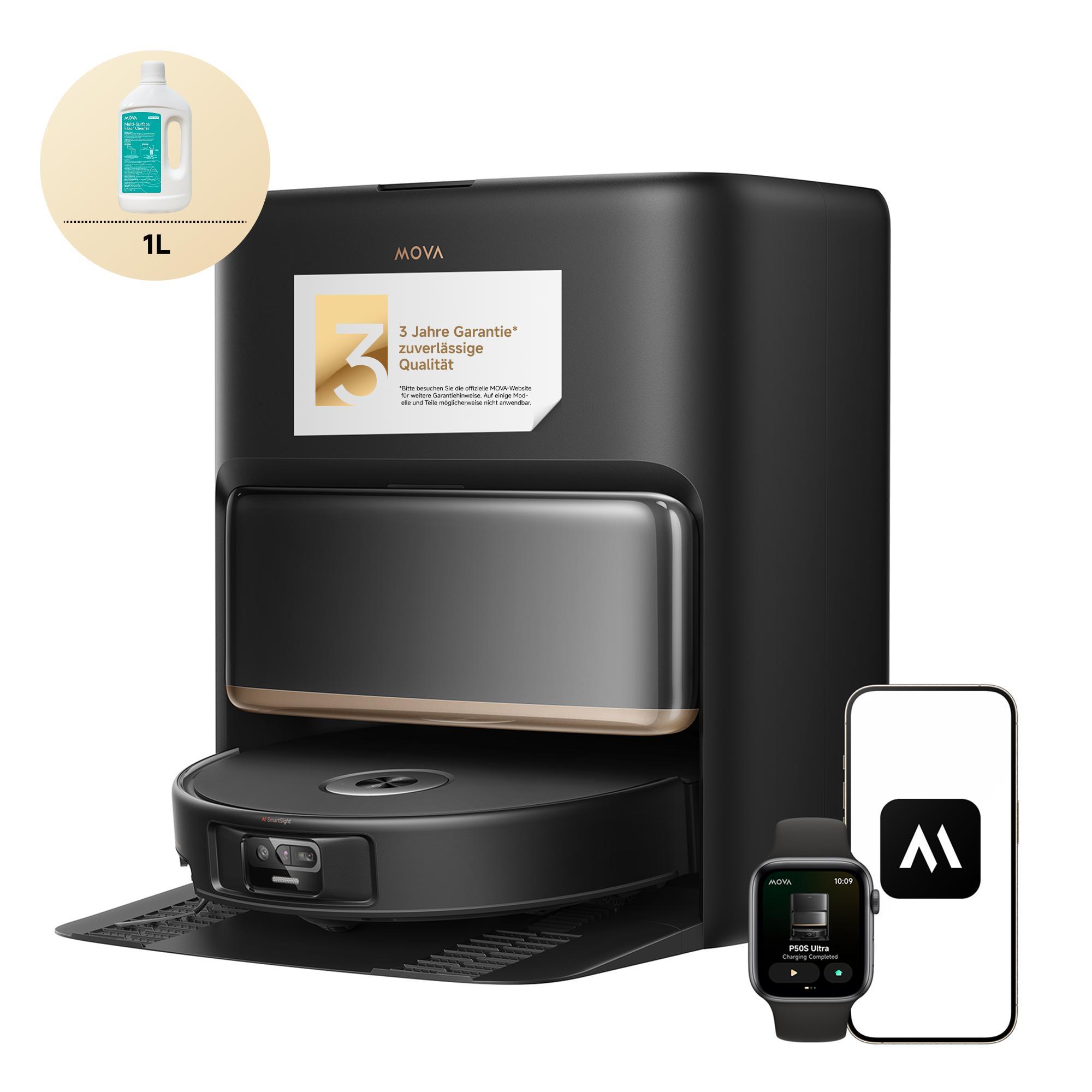 EAN: 9344458325560 - MOVA P50s Ultra SaugroboterDer MOVA P50s Ultra kombiniert eine starke Saugleistung von 24.000 Pa mit innovativer Technologie wie FlashPulse Navigation, StepMaster Hinderniserkennung und TroboWave Doppelbürste. Mit FlexReach für präzises Reinigen unter Möbeln und JetSpray Dryboard für hygienische Sauberkeit ist er ideal für Haushalte mit Teppichen, Haustieren und Hartböden.FlashPulse -NavigationStepMaster -System zum überwinden von HindernissenStarke Saugkraft (24.000 Pa)TroboWave -DoppelbürsteFlexReach -TechnologieJetSpray Dryboard Starke Saugkraft (24.000 Pa) Leistung + Präzision = Profi-ReinigungMit seiner leistungsstarken Saugkraft von bis zu 24.000 Pa* meistert der P50s Ultra mühelos jeden Bodentyp und dank der 5 einstellbaren Saugstufen können Sie die Leistung genau an Ihre Reinigungsanforderungen anpassen von der Entfernung von leichtem Staub bis hin zur Tiefenreinigung. FlashPulse -Navigation Erkennen, kartieren, reinigenDie Dual-Light 3D ToF FlashPulse -Navigation bietet eine schnelle 3D-Kartierung und eine präzise Reinigung und dank des kompakten Designs mit integriertem ToF-Sensor bewegt sich der P50s Ultra mühelos unter niedrigen Möbeln wie Sofas, Schränken und Betten und reinigt diese schwer zugänglichen Bereiche gründlich. Er erkennt alles, erreicht jeden Winkel und reinigt wie ein ProfiStepMaster zum überwinden von Hindernissen überwinden, gründlich reinigenMit seinen StepMaster -Rädern kann der Saugroboter sein Gehäuse anheben und so ... kaufland.d e MOVA P50s Ultra Saug- und Wischroboter 24.000 Pa, Auto-Absaugstation, StepMaster, Dual-LiDAR, mit 1L Extra Reinigungsflüssigkeit