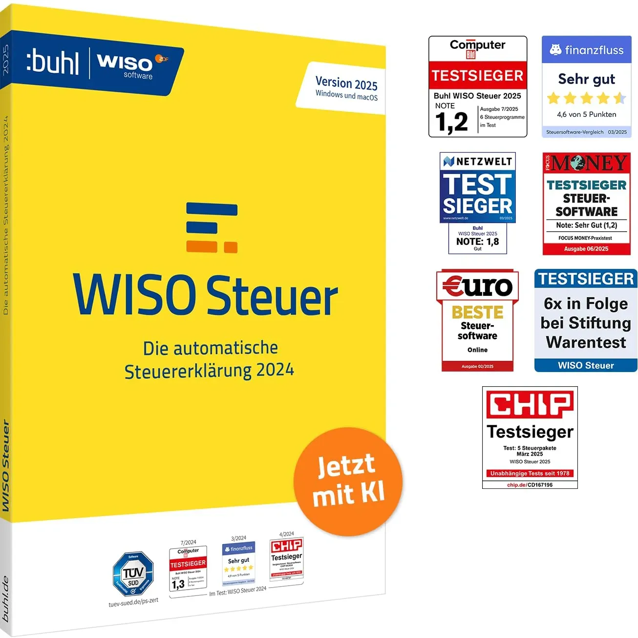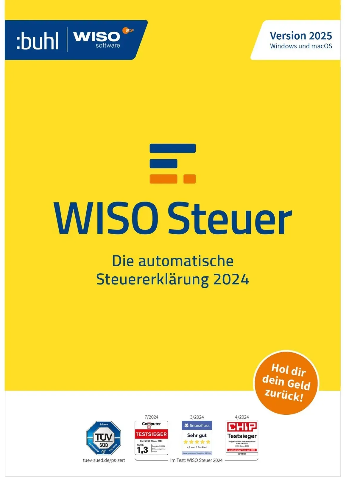 Anwendungssoftware Lifestyle Technik Computer - - Mit der WISO Steuer 2025 (für das Steuerjahr 2024) Software Vollversion (Download-Link) geht Ihnen Ihre Steuererklärung leichter von der HandEin leistungsstarkes und durchdachtes Hilfswerkzeug zur Bewältigung Ihrer Steuererklärung stellt Ihnen WISO mit der WISO Steuer 2025 (für das Steuerjahr 2024) Software Vollversion (Download-Link) zur Seite. Das Programm macht Ihre Steuererklärung zu einem Kinderspiel - so haben Sie mehr Zeit für angenehmere Dinge. Es ist für all diejenigen geeignet, die mehr aus Ihrem Geld machen wollen.Zusammenfassung der technischen BedingungenHier erfahren Sie mehr über die technischen Voraussetzungen, die gegeben sein müssen, damit das Programm reibungslos auf Ihrem Gerät läuft:Freie Festplattenkapazität: 3 GBMind. Arbeitsspeicherleistung: 4 GBSystemvoraussetzungen: Windows 10/11, macOS ab 11.00 (Big Sur)Ist die WISO Steuer 2025 (für das Steuerjahr 2024) Software Vollversion (Download-Link) geeignet für Ihre Zwecke?Nutzen können Sie den Artikel für 1 Gerät und bis zu 5 Steuererklärungen für das Steuerjahr 2024. Einmal kaufen und zeitlich unbegrenzt nutzen - die Nutzung des Programms ist nicht auf einen bestimmten Zeitraum beschränkt.Das ist besonders!Sie suchen nach besonderen Eigenschaften? Das bietet die WISO Steuer 2025 (für das Steuerjahr 2024) Software Vollversion (Download-Link): Unterstützt alle Einkunftsarten wie Nichtselbständige Tätigkeiten (inkl. Grenzgänger), Selbständige Tätigkeiten ... Dieses Angebot für 34.90 Euro ist eine gute Option für eine Download-Version der Standardsoftware. ![]() ![]() Buhl WISO Steuer 2025 (Steuerjahr 2024)
