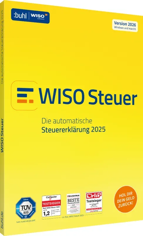 6 Händlerangebote bei billiger.de - Kategorie: Office-Software - Buhl - WISO Steuer 2026 €“ jetzt mit automatischer Steuererklärung Mit WISO Steuer wird deine Steuererklärung 2025 fast von selbst erledigt. Die Software trägt viele Angaben automatisch ein €“ auf Wunsch sogar unterstützt durch KI. Der intelligente Chatbot SteuerGPT beantwortet deine Fragen schnell, präzise und verständlich. Einmal zahlen, überall nutzen Egal ob am Windows-PC, Mac, Tablet, Smartphone oder direkt im Browser €“ du arbeitest immer mit denselben Daten. Ohne Mehrkosten, ohne komplizierte Synchronisation. Maximale Erstattung leicht gemacht WISO Steuer begleitet dich Schritt für Schritt durch deine Erklärung €“ verständlich erklärt und mit vielen anschaulichen Videos. Auch Selbständige, Vermieter oder Anleger profitieren von umfassenden Hilfen und der TüV-geprüften einfachen Bedienung. Exklusiv hier: vollständig automatische Steuerdaten Dank intelligenter übernahme aus dem Vorjahr, vorausgefüllter Daten vom Finanzamt (VaSt) sowie Informationen aus deinem Bankkonto sparst du noch mehr Zeit. Die Abgabe funktioniert papierlos €“ sogar ohne eigenes ELSTER-Zertifikat. SteuerGPT und weitere smarte Assistenten sind ebenfalls enthalten. Mehr sparen dank Profi-Wissen über 150 Videos, zahlreiche Spartipps, exakte Erstattungsprognosen, ein Steuerbescheid-Prüfer, Planspielmodus, Lohnsteuer-Ermäßigungsantrag und vieles mehr unterstützen dich beim optimalen Ergebnis. Komfort, der ... Ein gutes Angebot von einem bekannten Elektronikhändler, das Vertrauen schafft und oft mit gutem Service verbunden ist. ![]() Buhl Data WISO STEUER 2026 - [PC]