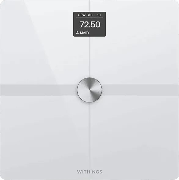 Zustand: Neu - Digitale Personenwaagen - Withings - WBS13-White-All-ROW - EAN: 3700546708206 EAN: 2220008799760 - EIN KLINISCHER SCAN IHRER GESUNDHEIT - Body Smart wurde in Zusammenarbeit mit führenden Krankenhäusern und klinischen Einrichtungen entwickelt und ist klinisch validiert. ERREICHEN SIE IHRE FITNESSZIELE SCHNELLER - Messen Sie Ihr Gewicht zuverlässig mit einer Genauigkeit von 50 g und sehen Sie Ihre Gewichtsentwicklung direkt auf dem hochauflösenden Farbbildschirm der Waage. RAPIDER AUFBAU VON MUSKELMASSE - Bauen Sie schneller Muskelmasse anhand der Analyse Ihrer Körperzusammensetzung auf, um Ihre Bemühungen anzupassen. FOLGEN SIE IHREM HERZEN - Messen Sie bei jedem Wiegen Ihre Herzfrequenz, ein guter Indikator für die allgemeine Herz-Kreislauf-Fitness. STOFFWECHSEL ANKURBELN - Regen Sie Ihren Stoffwechsel an, indem Sie den täglichen Energiebedarf Ihres Körpers ermitteln. - Verkäufer: Withings DE im amazon.de Marketplace Die Withings Personenwaage Body Smart in Weiß für 96.86 Euro bei OTTO ist eine gute Wahl für Nutzer, die Wert auf die Withings App legen. ![]() ![]() Withings Personenwaage Body Smart, Withings App weiß