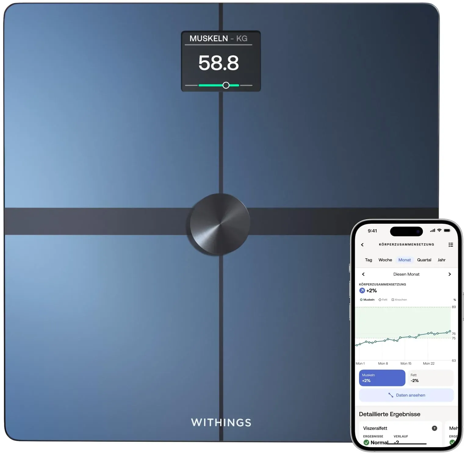 Verfügbarkeit: 2-4 Werktage - Kategorie: Personenwaagen - Withings - GTIN:3700546708206 - Die smarte Waage Withings Body Smart stellt dir alle Informationen bereit, die du für eine gute überwachung deiner Gesundheit benötigst. - 100,00 Euro bei i-run - gefunden von billiger.de Die Withings Body Smart für 117.97 Euro bei Amazon Marketplace bietet eine erweiterte Körperzusammensetzungsanalyse, inklusive Muskelmasse und Knochendichte. ![]() ![]() WITHINGS Body Smart €” WLAN Digitale Personenwaage / Körperfettwaage für erweiterte Körperzusammensetzung inkl. Muskelmasse, Wasseranteil, Knochendichte