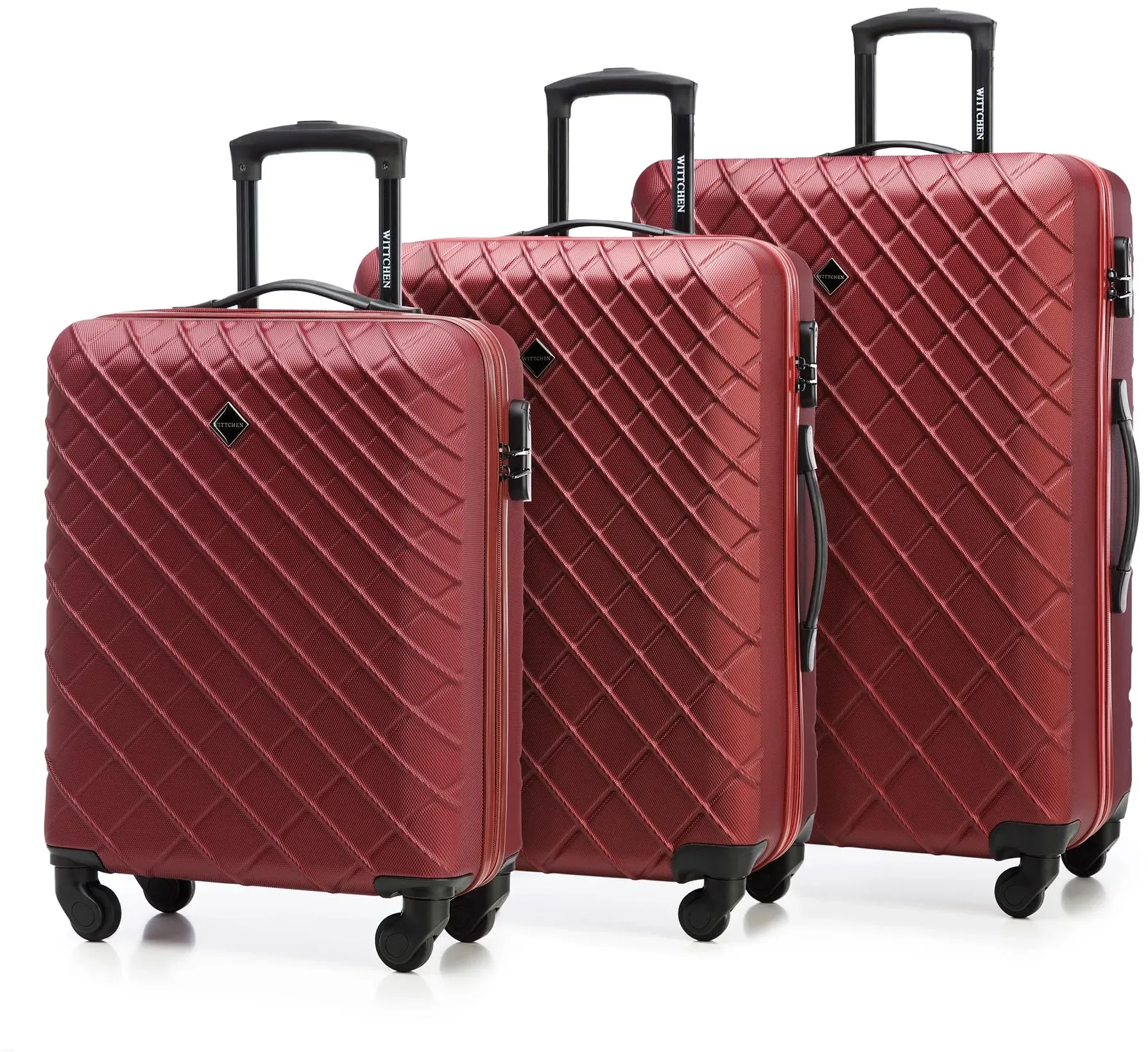 Kategorie: Trolleys - WITTCHEN - GTIN:5906084098474 - Material: Strapazierfähiges ABS, widerstandsfähig gegen mechanische Beschädigungen und Kratzer, bietet zuverlässigen Schutz für Ihr Gepäck über eine lange Nutzungsdauer. Zusammensetzung: 100% Acrylnitril, Futter: 100% Polyester. Durchdachtes Innenleben: Die Koffer sind mit verstellbaren Schultergurten, einer Reißverschlusstasche und einem Reißverschlussfach für die perfekte Organisation Ihres Gepäcks und die sichere Aufbewahrung Ihrer Habseligkeiten ausgestattet. Design: Die horizontale Prägung verleiht den Koffern einen eleganten, einzigartigen Look, der zu jeder Gelegenheit passt. Bequeme und funktionelle Lösungen: Mobilität: Vier Zwillingsräder mit einem Schwenkbereich von 360 Grad ermöglichen ein einfaches Manövrieren in jede Richtung. Sicherheit: Ein internes Zahlenschloss schützt Ihr Hab und Gut vor unerwünschtem Zugriff. Teleskopgriff: Die dreistufige Höhenverstellung sorgt dafür, dass der Koffer je nach Körpergröße bequem zu tragen ist. - 119,99 Euro bei Amazon Marketplace Luggage - gefunden von billiger.de Ein praktisches 3er Koffer-Set der Classic line aus ABS mit Spinner-Rollen und Zahlenschloss, ideal für Familien oder Vielreisende. ![]() ![]() WITTCHEN Reisekoffer 3er Koffer-Set Rollkoffer Trolley Handgepäck Hartschale aus ABS mit 4 Spiner Rollen Zahlenschloss Teleskopgriff Classic line Burgund