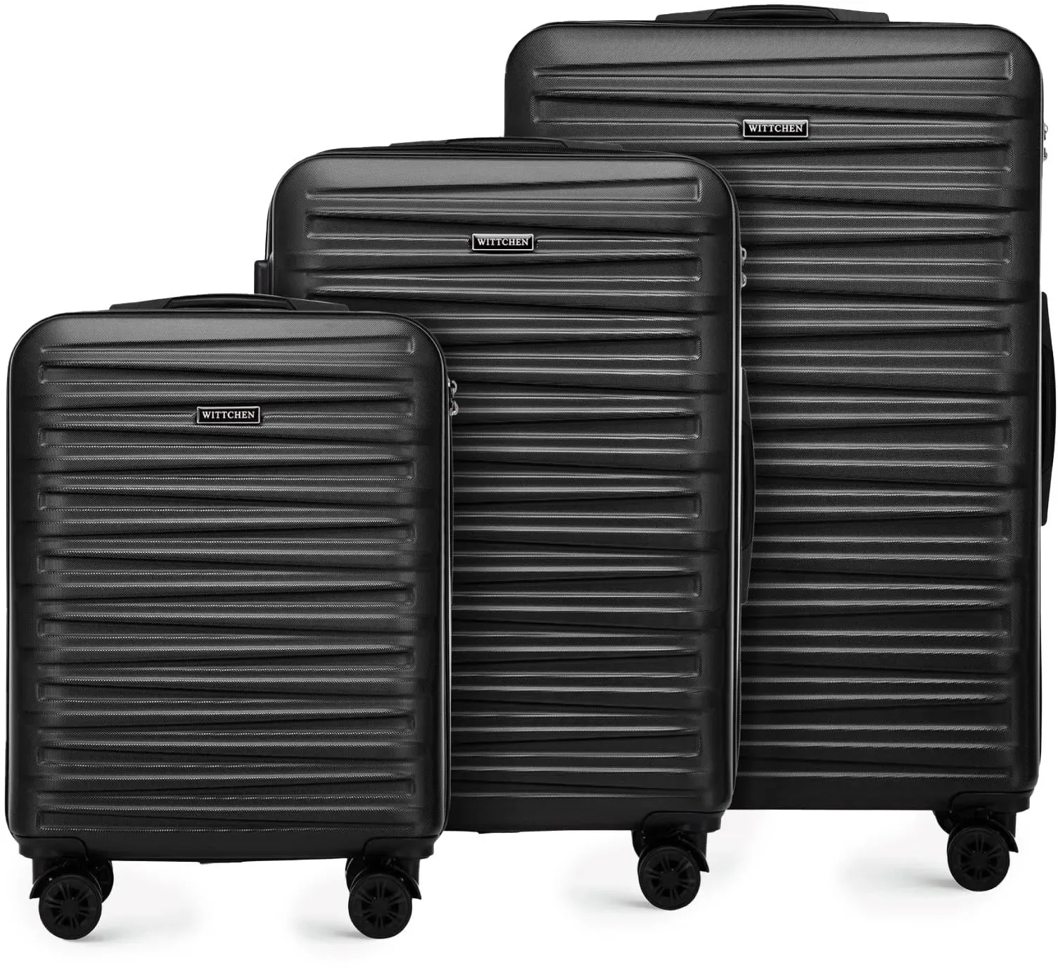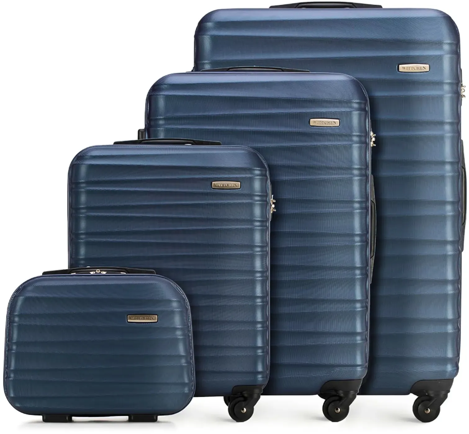 Koffer Gesamtsortiment Mode Taschen + Gepäck Koffer - EAN:5900062407432 - Der Wittchen PC Ultra Light Handgepäckkoffer in Blau ist aus Polycarbonat gefertigt und wiegt nur 2,3 kg bei einem Volumen von 32 Litern. Er verfügt über vier doppelte Schwenkräder, eine teleskopische Aluminiumgriffstange und ein TSA-Schloss für zollfreundliche Inspektionen. Das Innenfach ist in zwei Bereiche unterteilt mit Haltegurten, Reissverschlussfächern und einem Netzfach zur sicheren Aufbewahrung. Die Masse betragen 56 x 37 x 20 cm und entsprechen den Handgepäckvorschriften. - gefunden von Kelkoo Ein 4er Set der Groove Line mit Hartschale, das eine umfassende Ausstattung für verschiedene Reisebedürfnisse bietet. ![]() ![]() WITTCHEN Groove Line 4-Rollen 4er Set / Hartschale / blau