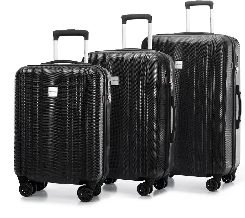 3 Händlerangebote bei billiger.de - Kategorie: Trolleys - WITTCHEN - Wittchen Kofferset mit Kosmetiktasche: Das perfekte Reisekoffer-Set für alle, die Stil, Funktionalität und Komfort schätzen. Ideal für Familien, Paare oder Reisende, die eine praktische Komplettlösung suchen. Eleganz und Funktionalität in einem Set: Dieses stilvolle Kofferset mit passender Kosmetiktasche vereint modernes Design, praktische Funktionalität und Langlebigkeit. Dank der ineinander stapelbaren Koffer wird zusätzlicher Stauraum im Schrank gespart. Perfekt für Reisende, die Platzoptimierung, Komfort und elegante Lösungen schätzen. Komfort: Die Kosmetiktasche hat einen Griff und einen verstellbaren Riemen für bequemes Tragen. Die Koffer sind mit vier 360-Grad-Drehrollen ausgestattet, die leises Manövrieren ermöglichen, und der ausziehbare Griff sowie die Gummigriffe erleichtern das Tragen Material: Strapazierfähiges ABS sorgt für Widerstandsfähigkeit gegen Schäden, sodass die Koffer und die Kosmetiktasche lange ihren perfekten Zustand behalten. Kombiniere Eleganz mit Funktionalität und genieße jede Reise Das Set enthält: Kleiner Koffer: (54 x 38 x 20 cm; Gewicht: 2,6 kg; Fassungsvermögen: 34L); Mittelgroßer Koffer: (67 x 45 x 26 cm; Gewicht: 3,5 kg; Fassungsvermögen: 65 L); Großer Koffer: (77 x 52 x 29 cm, Gewicht: 4,1 kg; Fassungsvermögen: 96 L); Kosmetiktasche: (30 x 34 x 16 cm; Gewicht: 1 kg; Fassungsvermögen: 15 L) - GTIN:5900062089997 Dieses Kofferset der ULTIMO Line aus Polycarbonat mit TSA-Schloss und 4 Lenkrollen bietet eine hochwertige Lösung für anspruchsvolle Reisende. ![]() ![]() WITTCHEN ULTIMO Line Kofferset | Leichtes Gepäck Reisekoffer | Polycarbonat TSA-Schloss Teleskopgriff 4 Lenkrollen | Reisegepäck | Wittchen ULTIM... - Schwarz