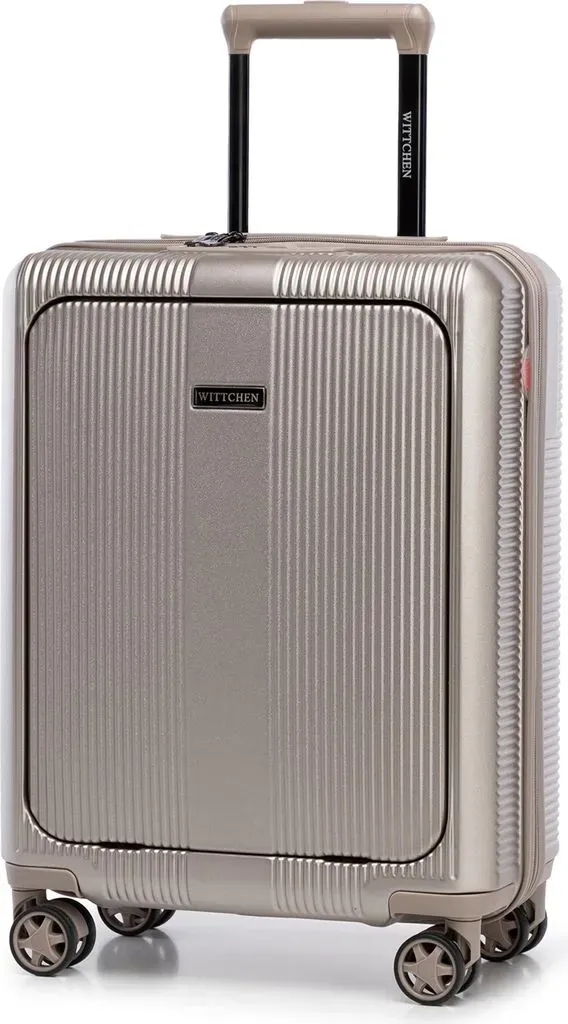 Kategorie: Trolleys - WITTCHEN - GTIN:5900062394923 - HANDLING: Leichtgängiger Teleskopgriff aus robustem Aluminium für eine komfortable Höhenverstellung und ein ergonomisches Handling. Zusätzlich mit einem stabilen Gummigriff ausgestattet, der das Anheben und Transportieren des Koffers erleichtert. INNEN: Geräumiges Hauptfach mit verstellbaren Innengurten, die das Verrutschen des Inhalts minimieren. Ein Reißverschlussfach mit integrierter Netztasche bietet zusätzliche Aufbewahrungsmöglichkeiten. Zudem verfügt der Koffer über eine kleine Reißverschlusstasche in der Mitte für kleinere Gegenstände. Das Futter aus hochwertigem Polyester ist pflegeleicht, langlebig und schützt Ihre Reiseutensilien. SCHLOSS: Sicheres Kombinationsschloss, das ein unerwünschtes öffnen des Gepäcks verhindert und für zusätzlichen Diebstahlschutz sorgt. Ideal für Reisende, die auf Sicherheit, Zuverlässigkeit und Schutz ihrer Wertsachen Wert legen. ROLLEN: Ausgestattet mit vier Rollen, die eine einfache Manövrierbarkeit, flexible Beweglichkeit und einen ruhigen Transport auf unterschiedlichen Oberflächen ermöglichen. ABMESSUNGEN: (H x B x T): 77,5 x 52 x 29, Gewicht: 4,2 kg, Volumen: 96 L. Die Abmessungen umfassen auch Außenteile wie Griffe und Räder. Die Abmessungen sind ungefähre Angaben und können sich um +/- 5% unterscheiden. - 75,00 Euro bei Amazon Marketplace Luggage - gefunden von billiger.de Ein Handgepäckkoffer aus Polycarbonat mit TSA-Schloss und USB-Port, der moderne Annehmlichkeiten für unterwegs bietet. ![]() ![]() WITTCHEN Koffer Handgepäck | hartschalen, Material: polycarbonat | TSA | USB Port | Small Wittchen POLYCARBONATE CABIN CASE - Beige