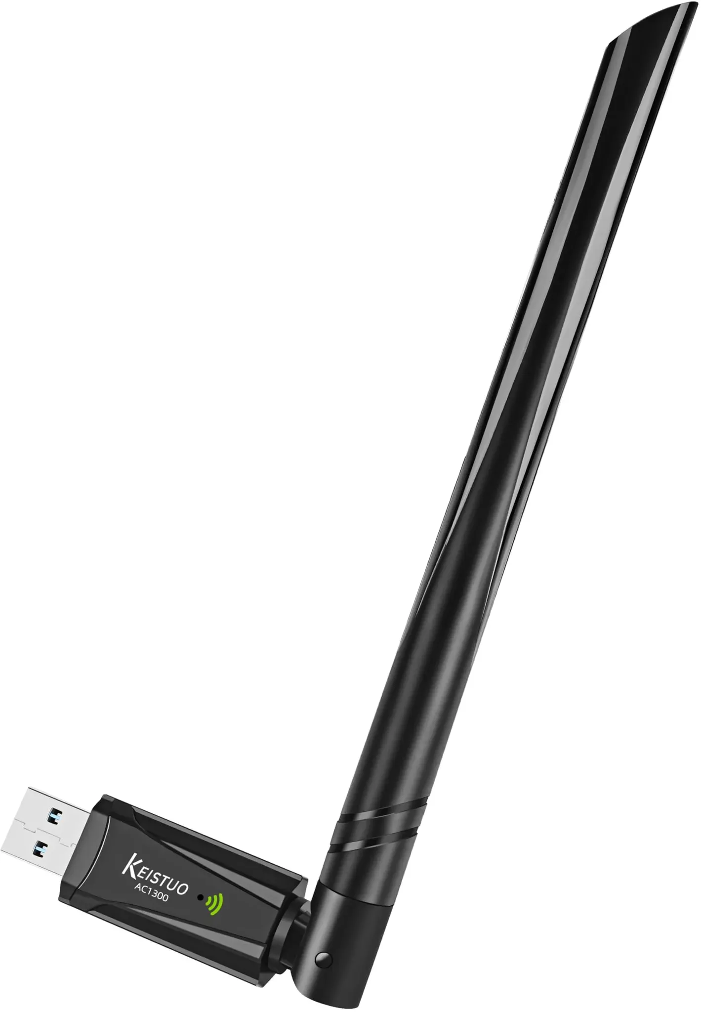 Kategorie: WLAN-Sticks - ElecMoga - Schnell & Kompatibel:Wlan USB Stick bis zu 1300 Mbit/s, 400 Mbit/s auf 2,4GHz und 867 Mbit/s auf 5GHz,Unterstützung für alle gängigen WLAN-Standards(802.11ac/a/b/g/n),Kompatibel mit Windows 11 / 10 / 8 / 8.1 / 7 / Vista / XP, Mac OS Systemen. Leistungsstarke externe Antennen:USB wifi adapter mit zwei Die 5dBi-Dual antennen-Netzwerkkarte mit hoher Verstärkung sorgt für eine bessere Signalpenetration und eine höhere drahtlose Abdeckung, selbst wenn die Signale schwach sind. Die antennen können um 180 gedreht und eingestellt werden,um einen optimalen Signalempfang in jeder Position zu gewährleisten und die Empfangs- und übertragungsgeschwindigkeit des USB-Adapters zu verbessern. Schnelle USB 3.0-Schnittstelle:Wlan USB Stick für PC stick nimmt 3.0 High-Speed-übertragungsschnittstelle, die 10-mal schneller als USB 2.0 ist und ist abwärtskompatibel mit USB 2.0 Schnittstelle Geräte. Es ist die beste Wahl für Ihre wlan dongle Festplatte. Stabile und Sichere Netzwerkverbindung:Der USB-WLAN-Adapter unterstützt die AP-Routing-Funktion und richtet ein WLAN ein, unterstützt die intelligente AP-Switch-Funktion, funktioniert mit allen WLAN-Routern, teilt Netzwerkressourcen einfach. Unterstützt WPS, 64/128 Bit, WEP, WPA/WPA2 und WPA-PSK/WPA2-PSK fortschrittliche Sicherheitsmechanismen und Verschlüsselung machen das Internet sicherer. Einfach zu bedienen:Wlan antenne ist einfach zu installieren, installieren Sie bitte ZUERST die Treiber über die MINI-CD ... Dieser Plug&Play AC1300 DualBand Stick mit 5dBi Antenne ist eine gute Wahl für Nutzer, die eine einfache Installation und verbesserte Reichweite wünschen. ![]() ![]() KEISTUO USB WLAN Stick AC1300 Plug&Play für Windows 10/11, DualBand (bis zu 867 Mbit/s 5GHz, 400 Mbit/s 2,4) mit 5dBi Antenne, USB WiFi Adapter für PC/Desktop/Laptop
