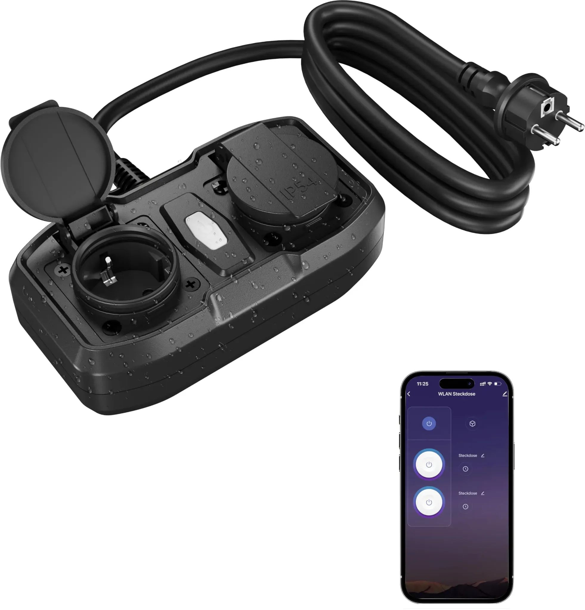 Kategorie: Steckdosen - HBN - GTIN:0810079581016 - Einzeln steuerbar: Schalten Sie beide Steckdosen völlig unabhängig voneinander durch die App. So haben Sie immer die individuelle Kontrolle über die angeschlossenen Geräte. App-Steuerung per Internet: Nur mit einem Smartphone oder Tablet, lassen Sie sich die WLAN-Doppelsteckdose einfach und problemlos per App einrichten und bedienen. Somit können Sie Ihre Geräte von unterwegs kontrollieren und müssen sich nicht mehr nach Schaltern bücken. Per Sprachbefehl steuerbar: Steuern Sie die WLAN Außensteckdose ganz bequem per Sprachbefehl. Kompatibel mit Alexa und Google Assistant für echten Smart-Home-Komfort. Zeitschaltuhr und Timer-Funktion: Mit der Outdoor WLAN-Steckdose legen Sie flexibel fest, wann Ihre Geräte automatisch ein- oder ausgeschaltet werden. Für jede Steckdose lassen sich direkt in der App bis zu 30 Zeitpläne erstellen. Wetterfested Design: Mit Schutzklasse IP54 funktioniert die WLAN Steckdose Outdoor auch bei Regen und Staub zuverlässig. Nutzen Sie sie sorgenfrei im Garten, auf der Terrasse oder am Pool. 24H Ccountdown-Funktion: Legen Sie einen Countdown von bis zu 23 Stunden und 59 Minuten fest. Die Steckdose schaltet sich danach automatisch ein oder aus. Flexible Installation: Das 1,5 m lange Kabel erleichtert die Platzierung in schwer erreichbaren Bereichen wie Hecken, Gartenwegen oder hinter Gartenmöbeln. Perfekt für saisonale Dekorationen wie Weihnachtsbeleuchtung oder Sommerpartys im Außenbereich. - 25,49 ... Die Refoss WLAN Outdoor Steckdose mit 2 Ausgängen und 1,5m Kabel bietet Flexibilität bei der Platzierung und ist mit Alexa und Google Home kompatibel. ![]() ![]() Refoss WLAN Outdoor Steckdose, Smart Bluetooth Außensteckdose mit 2 Ausgänge, IP44 Wasserdicht Außen Steckdose funktioniert mit Alexa und Google Home, Fernbedienung, 16A, 1,5 m Kabel