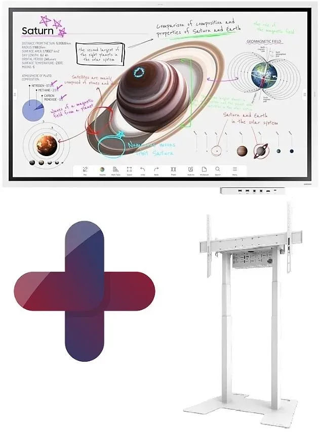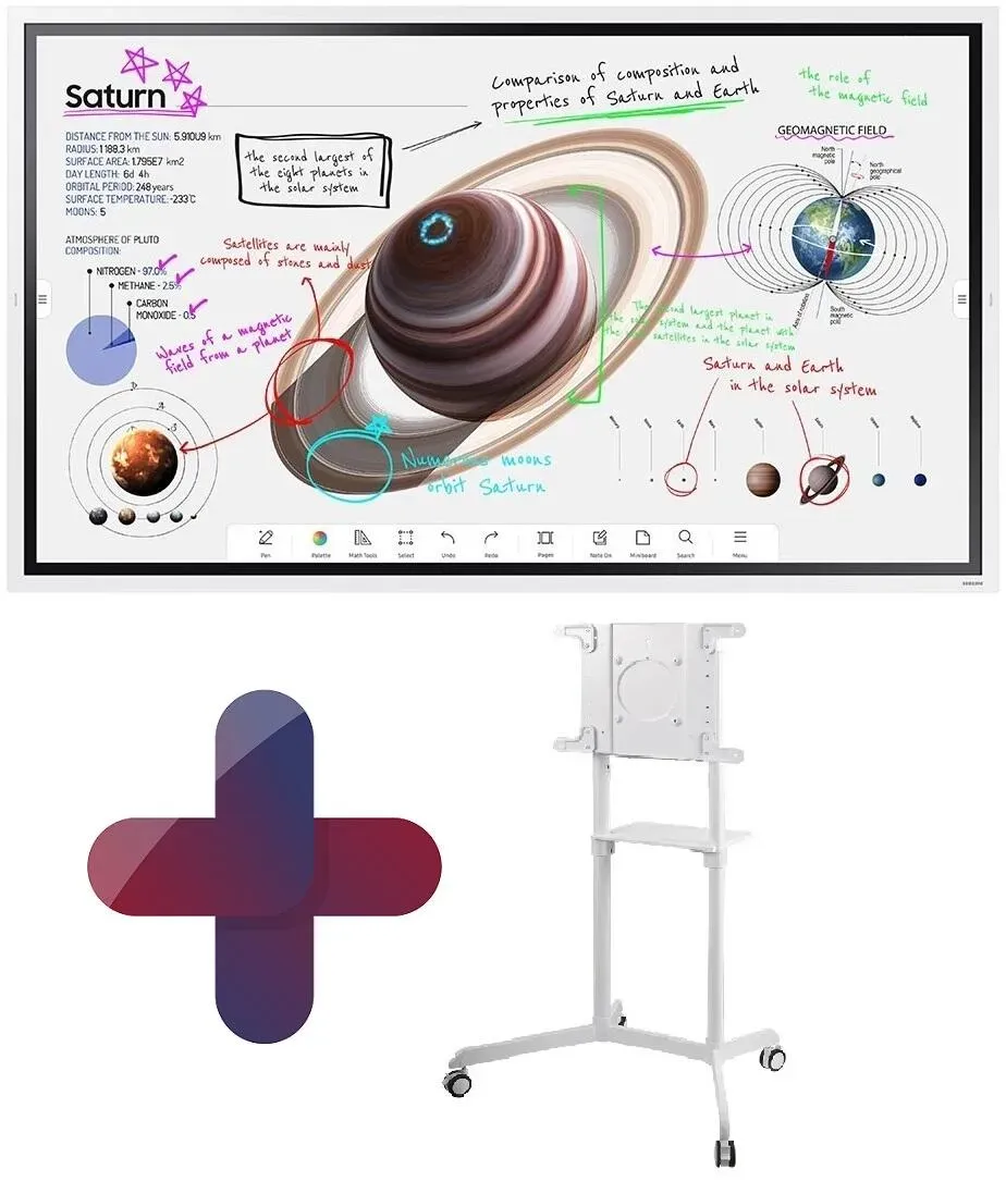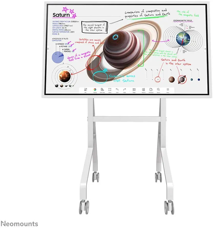 Samsung - Samsung Flip Pro WM65B Flipchart 165 cm 65 Zoll inkl. Neomounts PLASMA-M1700E mobiler Rollwagen 4K UHD, IR-Touch, HDMI, USB, WiFi, Bluetooth, AirPlay, Tizen 6.5 - bei office-partner.de - aus Yadore Produktdaten Office Partner GmbH bietet das Flip Pro WM65B zusammen mit einem rotierbaren Rollwagen für 1269 Euro an, was eine gute Option für interaktive Präsentationen ist. ![]() ![]() Samsung Flip Pro WM65B Flipchart 165 cm 65 Zoll + Neomounts NS-M1250 Rollwagen rotierbar