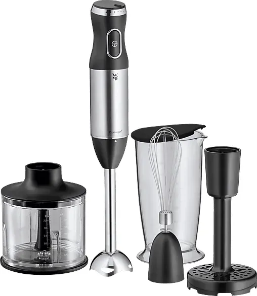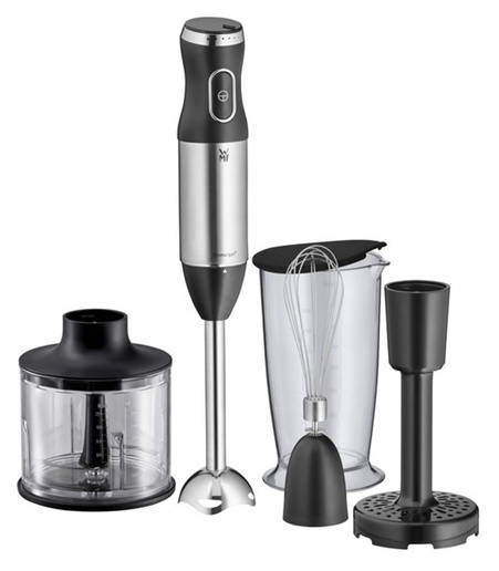 Kategorie: Mixer - WMF - GTIN:4211129131308 - Hand blender, 600 W, Ergonomic handle for maximum comfort, Variable speed setting, High-quality 4-wing stainless steel blade, black stainless steel, silver The stylish tool for versatile cooking. Elegant Cromargan design - this stick mixer already enjoys cult status. Surprisingly easy to use and slim enough to fit in any drawer. A pureeing all-rounder that makes kitchen work a lot easier. Creamy soups, sauces, vitamin-rich smoothies and thick sauces and dips made in an instant. Variable speed settings and 600 watts of peak blending power ensure the perfect consistency. WMF Perfect Cut Technology does the rest. - 53,47 Euro bei Proshop.de - gefunden von billiger.de Dieses Set bietet einen guten Wert für den Preis und ist ideal für Nutzer, die mehr als nur den Stabmixer benötigen. ![]() ![]() WMF Kult X Stabmixer-Set