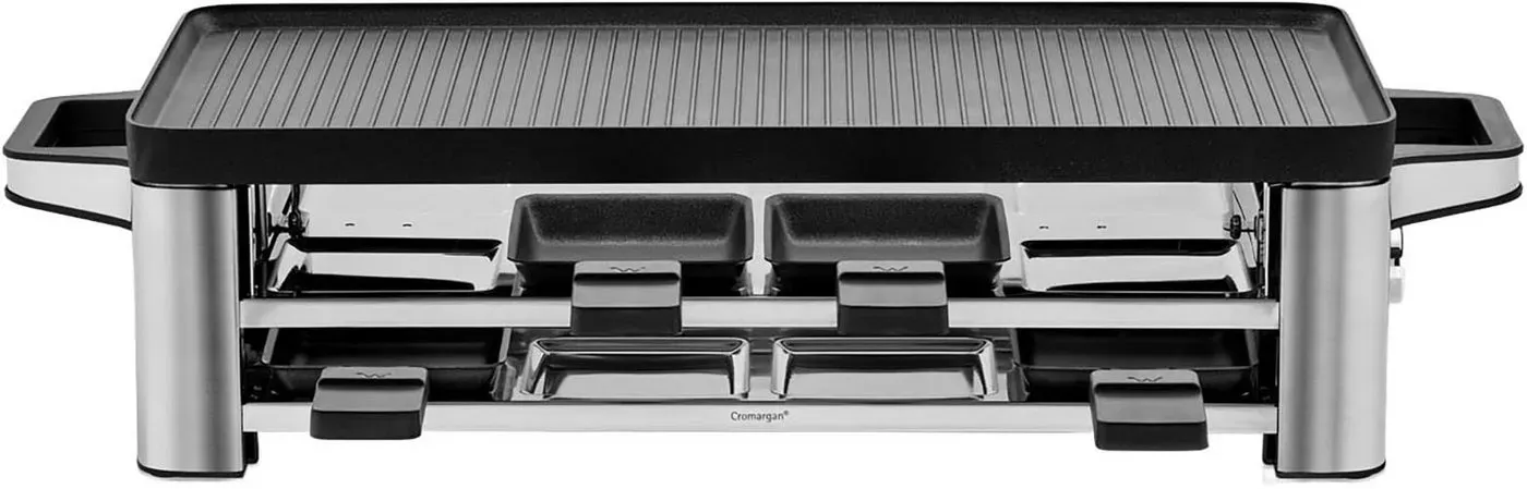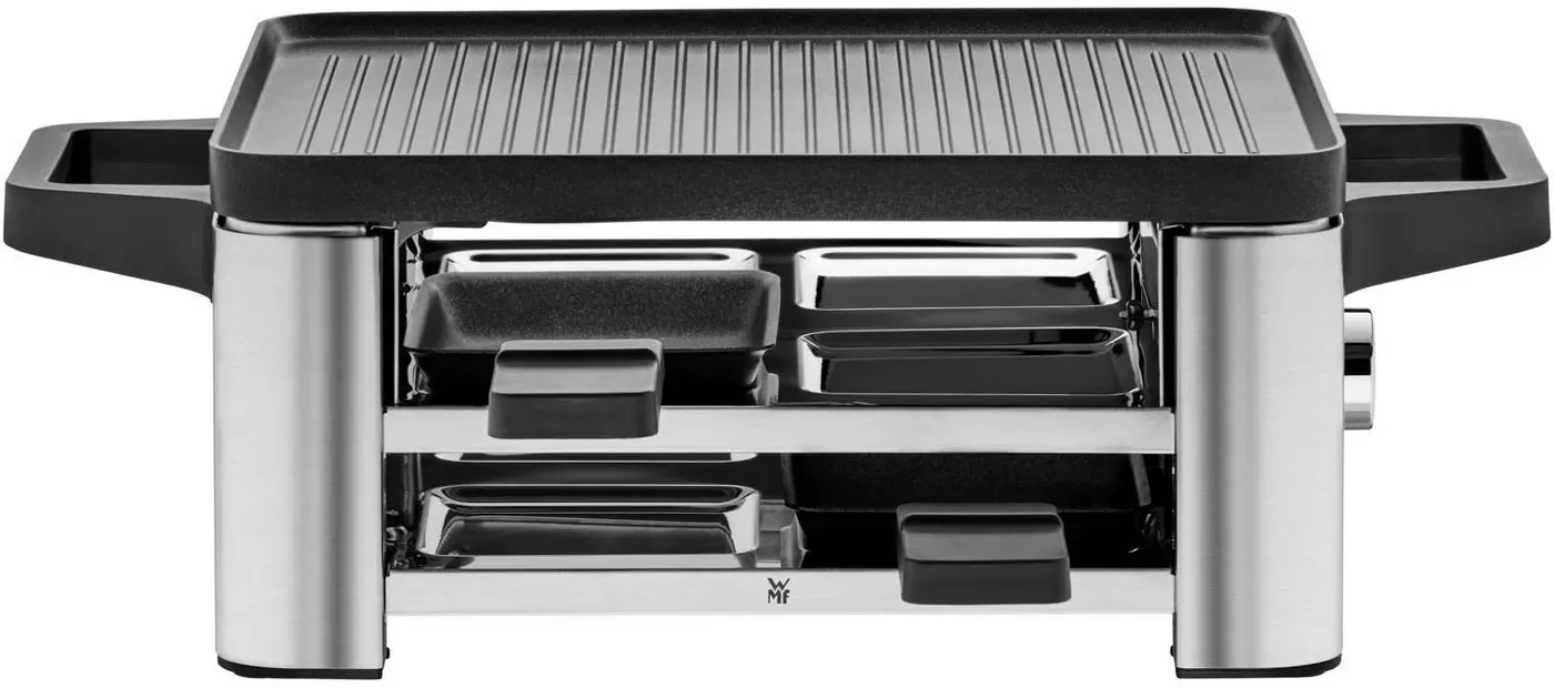 Auf Lager Versand durch AmazonWMF Lono Raclette Grill mit Pfännchen und Schiebern, Raclette 4 Personen, 870 W, edelstahl matt