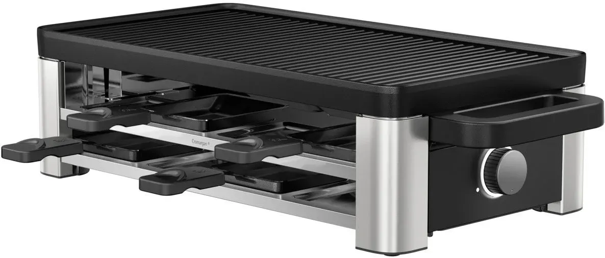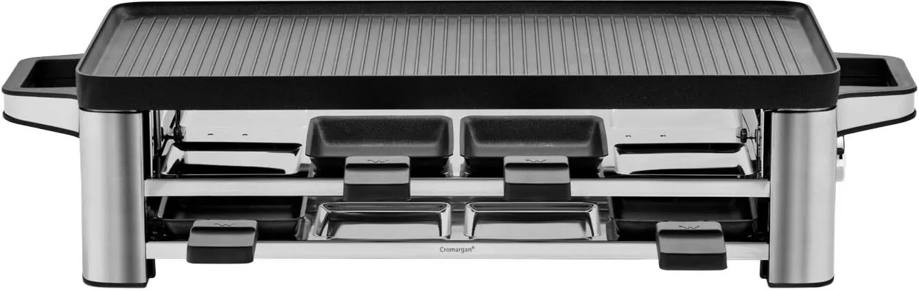 Auf Lager Versand durch AmazonWMF Lono Raclette Grill mit Pfännchen und Schiebern, Raclette 8 Personen, 1500 W, edelstahl matt