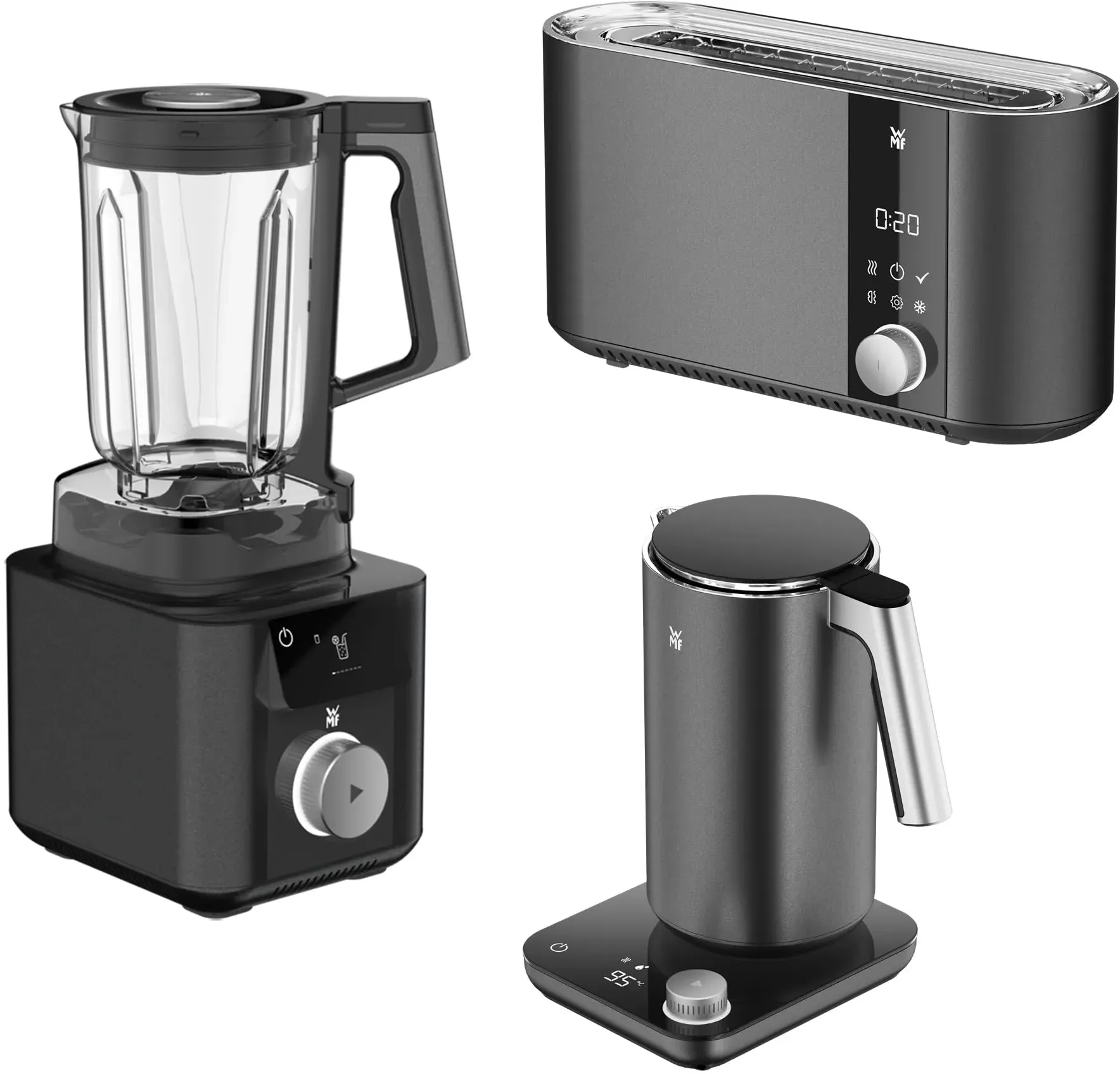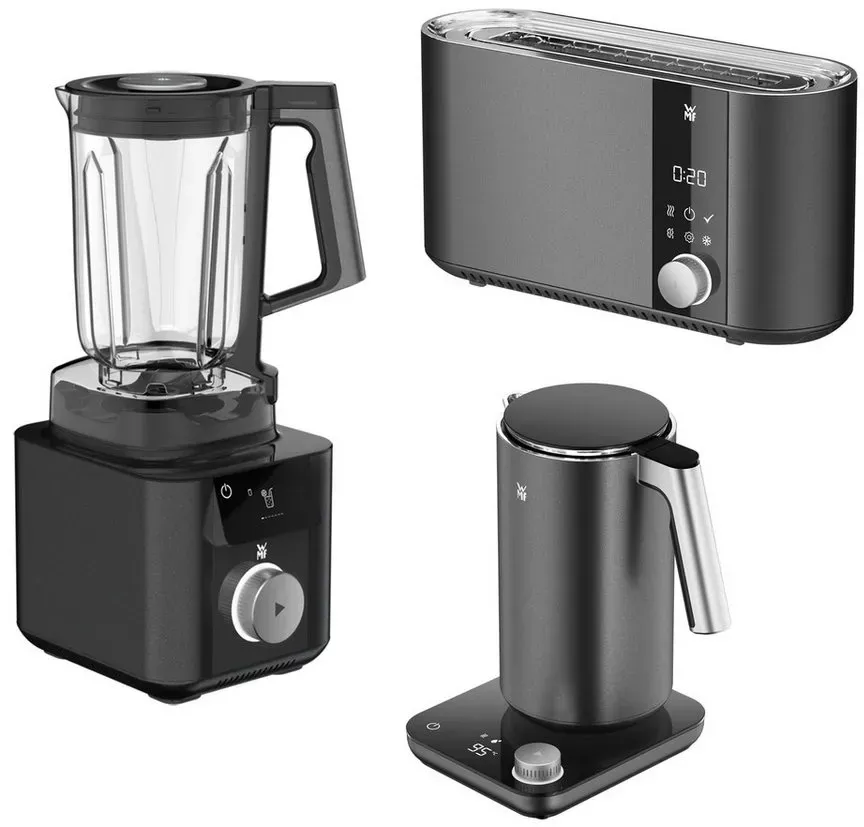 lieferbar-in 3-4 Werktagen bei dirWMF Toaster, Wasserkocher und Hochleistungsmixer Set 3-teilig Master Series, 1 langer Schlitz, XXL-Toast, Wasserkocher 1,3l, Standmixer mit Mixbehälter 1,75l schwarz