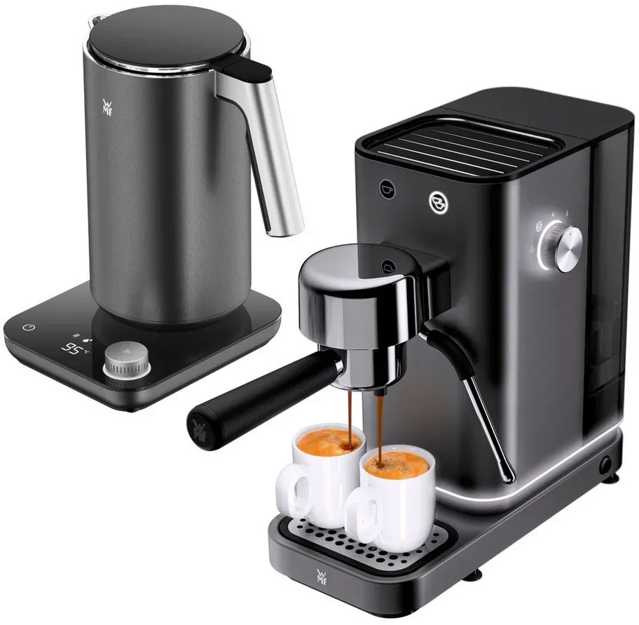 lieferbar-in 2-3 Werktagen bei dirWMF Wasserkocher und Lumero Espressomaschine Set 2-teilig Master Series, Wasserkocher doppelwandig, 1,3l, Espressomaschine Siebträger, 15 bar schwarz