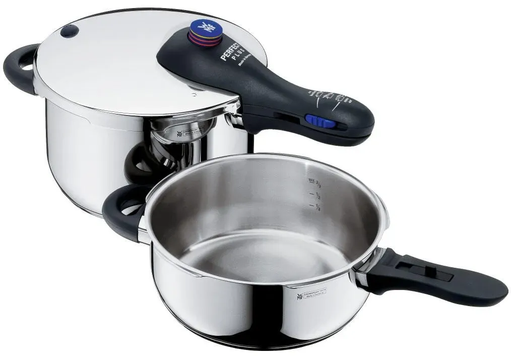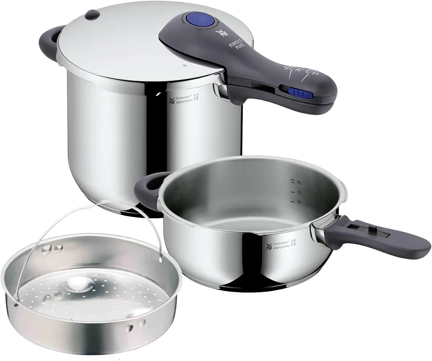 Auf Lager Versand durch AmazonWMF Perfect Plus One Pot Schnellkochtopf Set Induktion 2-teilig, Dampfkochtopf 4,5l + 3l, großes Kochsignal, 2 Kochstufen, abnehmbarer Deckelgriff