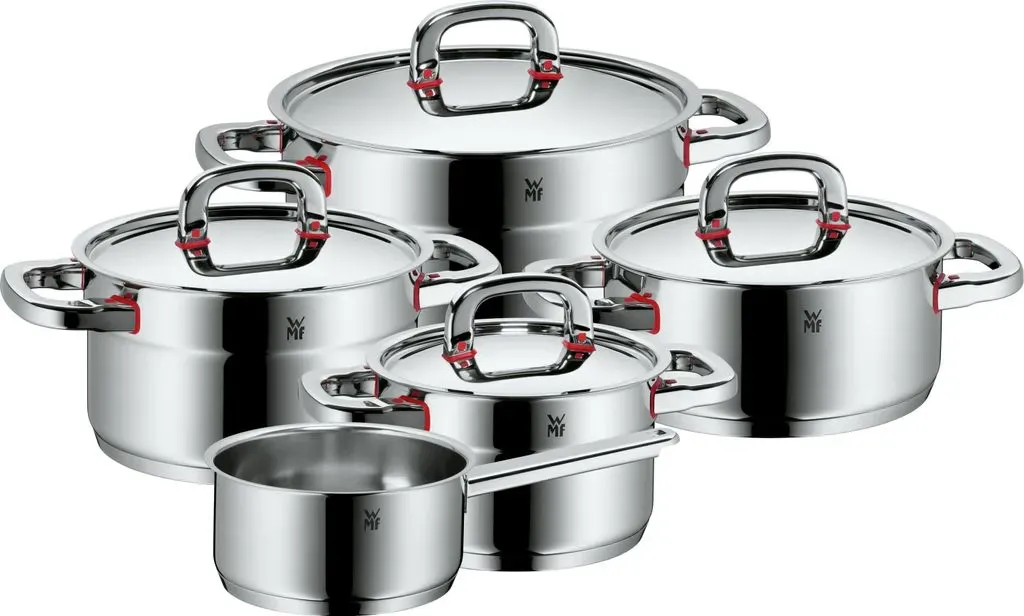 / - Home Küche Kochgeschirr Töpfe Töpfe & Pfannen - EAN:4000530720146 - Kochen auf 5-Sterne-Niveau: Kochgeschirr-Serie Gourmet Plus von WMF begeistert auf den ersten Blick mit schlicht-elegantem Design in schwerer, über viele Jahre hinweg strapazierfähiger Profi-Qualität aus formstabilem, säurefesten und geschmacksneutralem Cromargan R , Mattiert, vielen cleveren Details und herausragenden Kocheigenschaften. Alle Töpfe des Sets verfügen über den energiesparenden TransTherm R -Allherdboden für gleichmäßige Wärmeverteilung und lange Wärmespeicherung auf jedem Herd und im Backofen, die hochwertigen Edelstahldeckel liegen nicht nur satt auf, sondern verhindern durch die integrierte Dampföffnung auch wirkungsvoll Spritzwasser. Wärmereduzierende** Hohlgriffe, die praktische Innenskalierung zum präzisen Abmessen von Flüssigkeiten und der breite Schüttrand für tropffreies Abgießen sorgen für genau den Komfort, den sich Kochbegeisterte wünschen. Und damit es so komfortabel bleibt, dürfen natürlich alle Teile von Gourmet Plus auch zur entspannten Reinigung in die Spülmaschine. - gefunden von Kelkoo Dieses 5-teilige Function 4 Set aus Cromargan ist eine Investition in langlebige Qualität und vielseitige Einsatzmöglichkeiten. Kastner- oehler.de