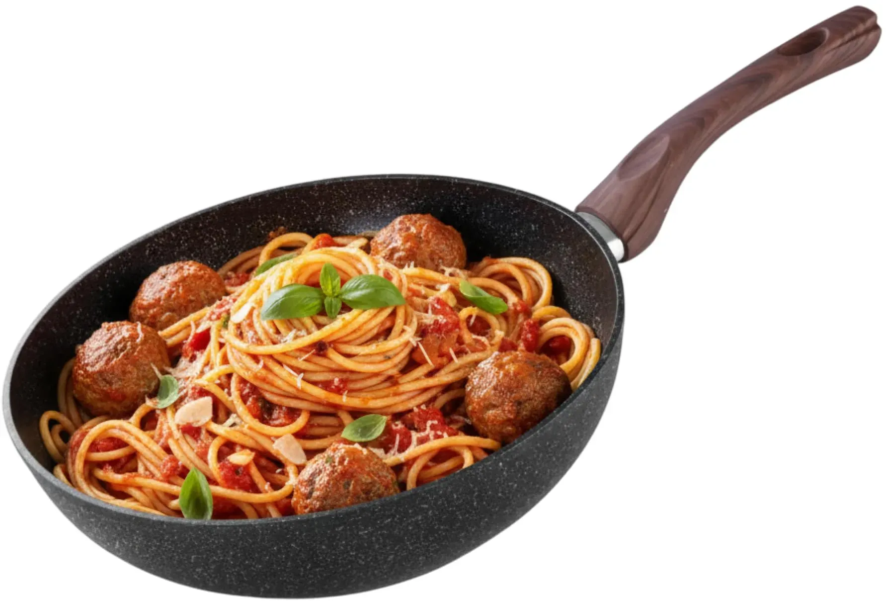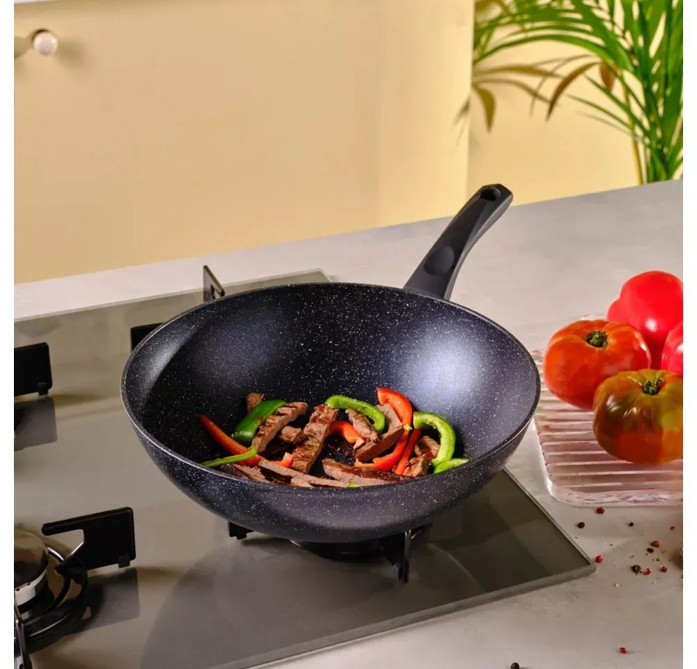 Haushalt Töpfe & Pfannen Pfannen - EAN:6924691375022 - Der 28 cm Wok aus geschmiedetem Aluminium überzeugt durch seine hohe Haltbarkeit und optimale Wärmeverteilung. Mit schwarzer Antihaft-Innenbeschichtung, ergonomischem grünem Griff und Induktionsgeeignet ist er vielseitig für alle Herdarten einsetzbar. Technische Merkmale: Durchmesser: 28 cm Material: Geschmiedetes Aluminium Innenbeschichtung: Schwarze Antihaftbeschichtung Außendesign: Schwarz Griff: Ergonomisch, grün Kompatibel mit allen Herdarten: Elektro, Induktion, Halogen, Glaskeramik, Gas Pflegehinweis: Handwäsche mit lauwarmem Wasser empfohlen - gefunden von Kelkoo Ein extrem preiswertes Angebot, ideal für preisbewusste Käufer, die eine einfache Wokpfanne suchen. ![]() ![]() Karaca Topf-Set Karaca Aqua Granit Wok Wokpfanne Pfanne Bratpfanne Kochtopf 28 cm schwarz