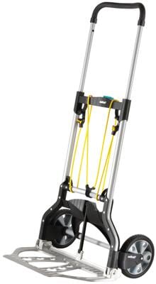 Wolfcraft - EAN: 4006885550100 - Ob Wasserkästen, Einkäufe oder Blumenkübel - mit einer Tragkraft von bis zu 100 kg macht Ihnen das Transportsystem TS 850 das Leben leichter und ist dank des Schnellklappsystems ruckzuck einsatzbereit. Lasten finden auf der soliden 49 x 28 cm grossen Aluminiumdruckgussschaufel ausreichend Platz. 2 gewölbte Rückenstreben geben Ihrem Transportgut Halt und nehmen auch runde Gegenstände wie Blumenkübel oder Gasflaschen optimal auf. Zusammengeklappt misst das Platzwunder schlanke 50 x 82 x 7,7 cm - ideal für den kleinen Kofferraum. Die pannensicheren Profilräder sind mit 18 cm sowohl für Innenräume als auch für das Aussengelände geeignet. Auch Stufen können Sie mit dem TS 850 gut überwinden. Die gerundete, gummierte Griffstange lässt sich für ermüdungsfreies und ergonomisches Transportieren auf bis zu 110 cm ausziehen. Durch die Rundung der Griffstange finden Ihre Hände beim Transport hoher sperriger Gegenstände ausreichend Freiraum. - bei galaxus.de - aus Yadore Produktdaten TECHNIKdirekt bietet den Wolfcraft TS 850 Transportwagen für 111,23 Euro an, was eine gute Option für Kunden ist, die einen spezialisierten Technik-Händler bevorzugen. ![]() ![]() Wolfcraft TS 850 Transportwagen