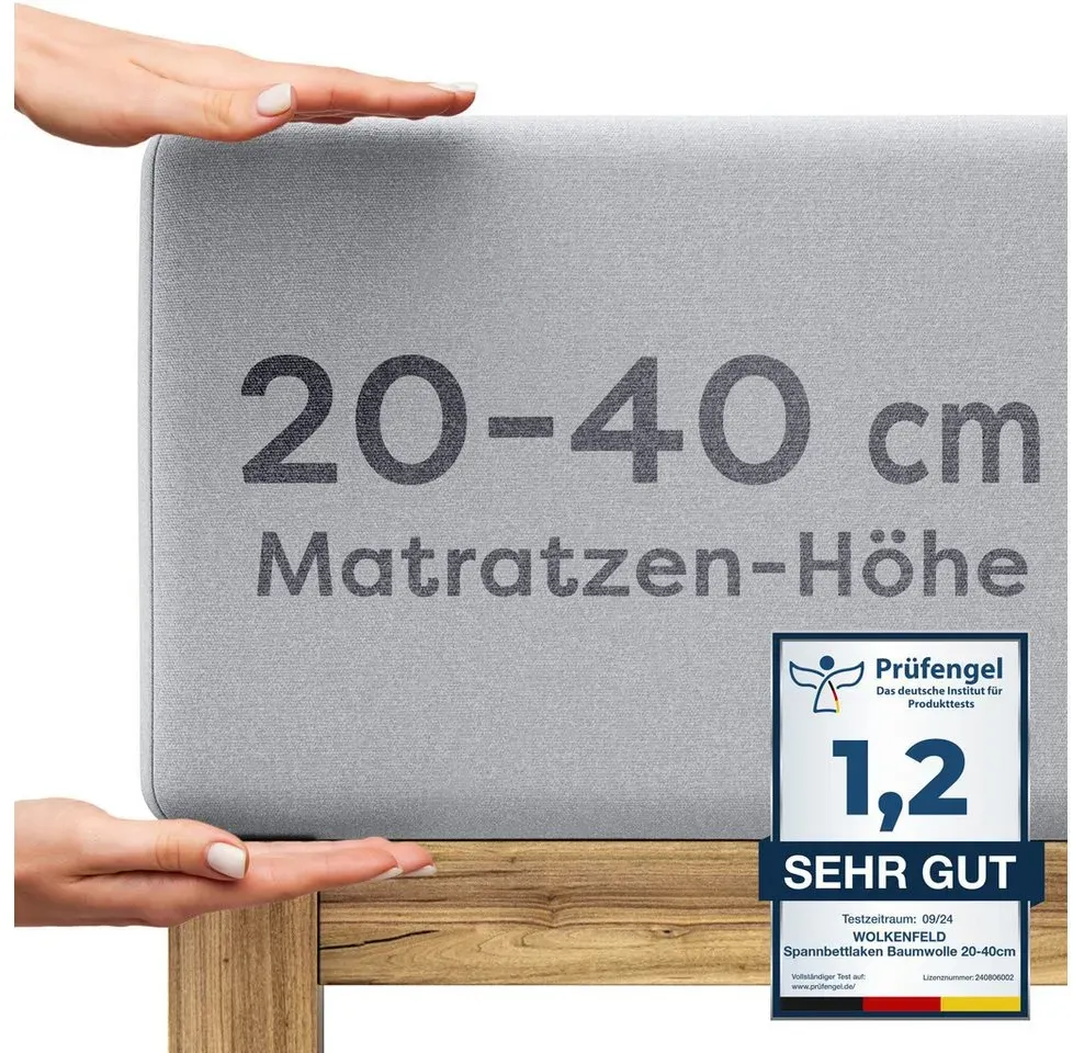 Zustand: Neu - Spannbetttücher - Wolkenfeld - Sophia 1041 - EAN: 8719689372637 - Jetzt in verbesserter Qualität - schon von Tausenden geliebt: Wir haben auf euer Feedback gehört und unsere Bettwäsche noch einmal verbessert. Das Gewebe ist jetzt weicher, langlebiger und besonders anschmiegsam - mit stärkeren Nähten und einer dickeren, dabei aber atmungsaktiven Struktur. Natürlich weiterhin OEKO-TEX-zertifiziert und mit spürbar mehr Komfort. BETTLAKEN 180x200 & 200x200: Der elastische Bettbezug mit starkem Flex-Wunder Gummizug passt perfekt auf Matratzen und Topper mit den Maßen 180x200cm und 200x200cm. Starker Halt bei max. Flexibilität. FÜR MATRATZEN & TOPPER von 5 BIS 20 CM HÖHE: Die Spannbettlaken sind in der Steghöhe sehr flexibel und bieten maximalen Halt für Topper ab 5cm und Matratzen bis 20cm Höhe. PFLEGELEICHT: Das Bettlaken ist bei 60 Grad waschbar, trocknergeeignet und läuft nicht ein. Entdecke mit der Wolkenfeld Bettwäsche die perfekte Ergänzung zu unserem flexiblen Spannbetttuch. WUSSTET DU? Mit deinem Kauf setzt du auf hochwertige, schadstoffgeprüfte Materialien, die in umweltfreundlichen Betrieben produziert wurden und unterstützt faire & sichere Arbeitsbedingungen. - 2 Händler im amazon.de Marketplace Dieses Spannbettlaken aus 100% Baumwoll-Jersey ist eine preisgünstige Option für Matratzen bis 20cm Höhe. ![]() ![]() Wolkenfeld Spannbettlaken 180x200cm bis 200x200cm - 100% Baumwolle - Superweiches Jersey Bettlaken für Matratze, Boxspringbett oder Topper - 5 bis 20cm Matratzenhöhe, Weiss