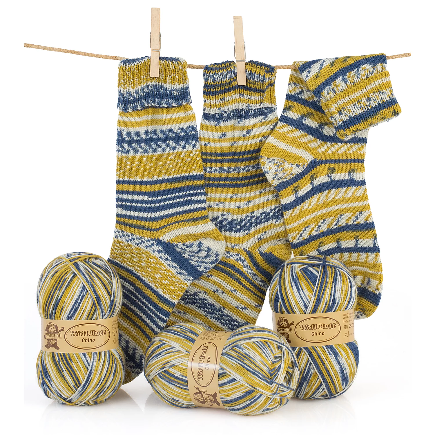 € 74,75 / 1 kg - Der angezeigte Preis könnte seit dem letzten Update gestiegen sein - EAN: 4058896374732 - Woll Butt Alva. Ein Dreieckstuch aus einem einzigen Knäuel - Woll Butt Alva macht's möglich! Jeder 200-Gramm-Knäuel, auch Bobbel genannt, besteht aus einem langen Farbrapport und reicht für ein wunderschönes winterliches Tuch; die Anleitung dafür... - Zustand: NEW - bei buttinette Textil-Versandhaus GmbH - gefunden von Buycentral Dieses Sockenwollpaket ist ideal für alle, die gerne Socken stricken und eine größere Menge benötigen. ![]() Woll Butt Sockenwollpaket Chino, 300 g