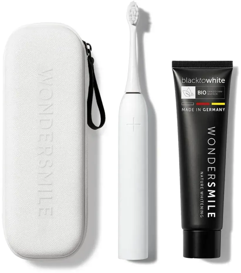 Kategorie: Elektrische Zahnbürsten - wondersmile - GTIN:4260756985204 - EFFEKTIVE SCHALLTECHNOLOGIE FüR DEIN WONDERSMILE - Die Schallzahnbürste bietet 4 verschiedene Programme mit je 3 Intensitätsstufen. Auch geeignet für empfindliche Zähne, Füllungen oder Kronen. 40.000 UMDREHUNGEN/MINUTE - Unser Bürstenkopf bewegt sich mit bis zu 40.000 Vibrationen pro Minute. Verfärbungen, Rückstände & Plaque werden so schonend und zuverlässig entfernt. DIE BESTE TECHNOLOGIE IN DEINEM BADEZIMMER - Der smarte Bürstenkopf Sensor bietet eine Erinnerungsfunktion. Er erkennt und zeigt dir an, wann du deinen Bürstenkopf austauschen solltest. 60 TAGE POWER AKKU - Der Wonderbrush Power Akku begeistert durch Ausdauer. Mit nur einer Ladung kannst du bis zu 60 Tage putzen. Lange Reisen sind so auch ohne Ladestation möglich. NACHHALTIGE BüRSTENKöPFE - Flexibler Kopf aus bis zu 90% nachwachsenden Materialien, der dein Zahnfleisch schont - 129,90 Euro bei Amazon Marketplace Automotive - gefunden von billiger.de Dieses Doppelpack für 129,90 Euro bietet zwei Wondersmile Schallzahnbürsten PRO, was ideal für Paare oder als Ersatz ist. ![]() ![]() Wondersmile Schallzahnbürste Doppelpack PRO - Elektrische Zahnbürste mit 4 Putzprogrammen - Inkl. smarten Bürstenkopf (All White)